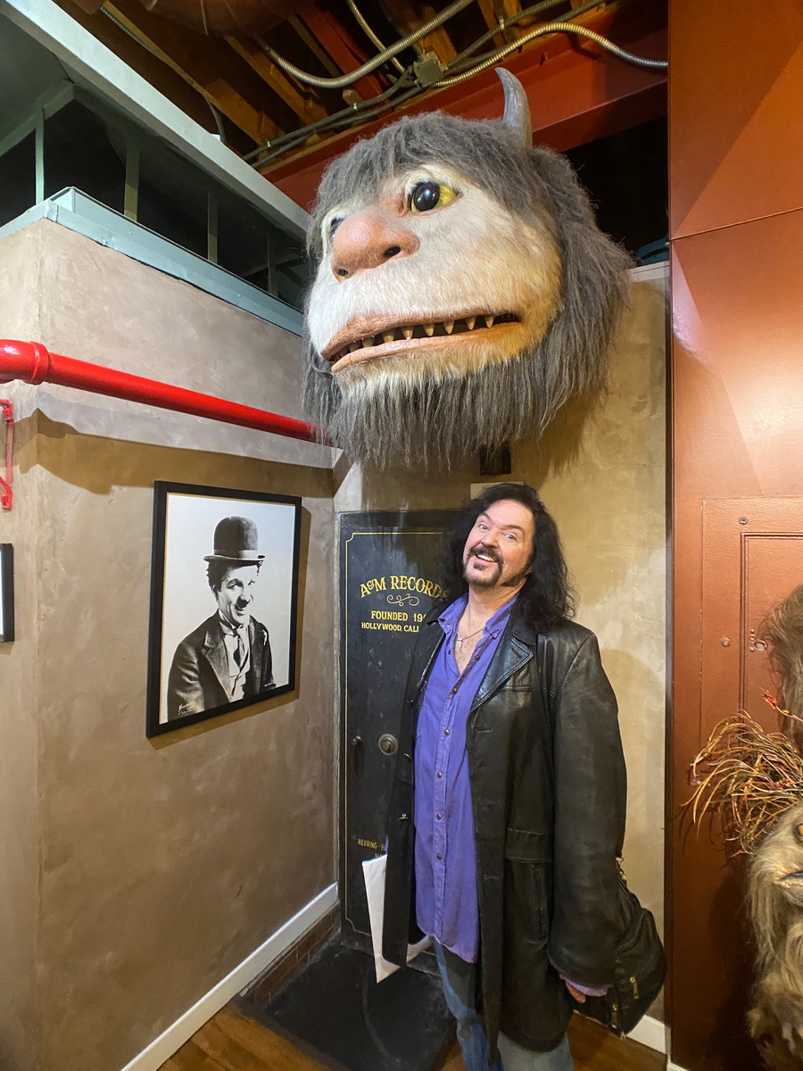 Behind me, is the vault that used to keep masters from A&M Records. Before that, Charlie Chaplin kept all his films locked within! Above me is Carol from “Where The Wild Things Are.”