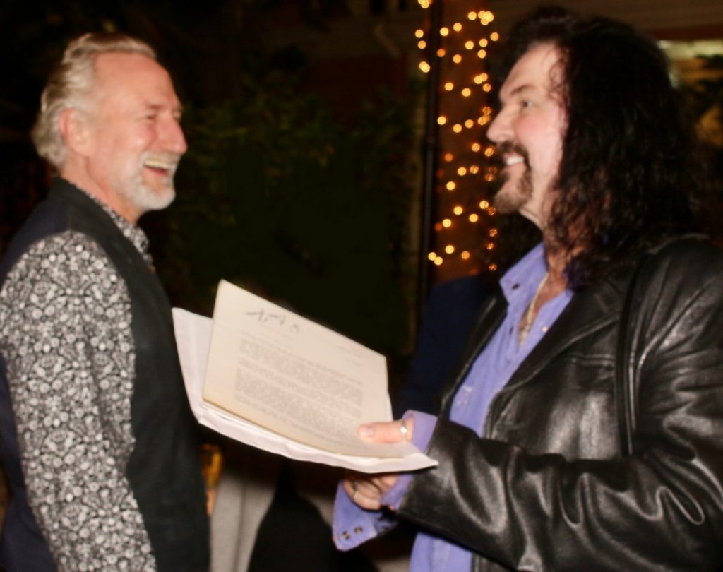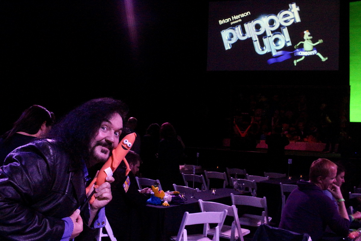 Saturday the 25th – UP FOR ‘PUPPET UP!’- My pal Tuesday Knight and her mom met me for lunch at Jerry’s Famous Deli so she could offer advice on which of my headshots I should have retouched for agents and managers. Now that I’ve decided to endeavor more into the field of on-camera work, I need to have some good headshots to show around. I stopped over to Rusty’s to get some more supplements for Roxy. Now that she’s 11, she’s experiencing some back leg tremors and muscle weakness. I have an appointment to take her to the vet next week to see if there’s anything we can do for her to prevent that, or if it’s just old age. I went inside and fed the kids and got cleaned up for “Puppet Up!” Every six months or so, The Henson Studios in Hollywood stage an improv comedy show that’s hilarious. For an additional charge you can also get a tour of the legendary studio and meet Brian Henson himself! Each table comes with six chairs, so I bought the entire table for the 9pm show on Saturday the 25th when the tickets went on sale. Fellow Voice Actor Secunda Wood came by at 6 so we could carpool over to the studio in Hollywood with my friends Scott and Vickie Sebring. We would meet our friends Officer Mark and Miss Connie at the studio. We were all very fired up to see the show. It was pure magic being on that lot. It was started by Charlie Chaplin back in 1917, and then owned by Red Skelton, and then sold to A&M Records back in 1962. The recording studio on that lot was responsible for some of the greatest musical acts to come out of the 60’s, 70’s and 80’s. Peter Frampton, Pablo Cruise, Janet Jackson, Supertramp, The Carpenters, the Police, Captain and Tennille, .38 Special, Styx, The Brothers Johnson, Rita Coolidge, and more – all came out of that studio! Not to mention that the studio played host to the recording of “We Are the World” back in 1985! The Henson Company bought the lot in 1999. We were standing on hallowed ground for the creative spirit! The tours were running late, so by the time our group got the tour they had to rush it a little bit. So while we were able to get a picture with Brian Henson, we were rushed out fairly quickly because the show was about to start. The show was amazing as usual (you never see the same show twice!) and afterwards I saw my pals Drew Massey and Grant Baciocco. Grant had puppeteered in the show we saw, and while Drew performs in the show as well, that night he was there as a spectator. I got the opportunity to show Brian Henson something I thought he’d get a kick out of. Back in 1980 to 1982 I was puppeteering all around Sioux Falls, South Dakota. I had dreamed of being a Muppet Performer since I was in 5th grade, working hard to adopt their puppeteering style and their type of voices, and then later striving to master their building techniques as a young adult. I made several Muppet replicas that I would take around town and perform for kids in hospitals, parks, art shows – virtually anywhere that would have me! At 19 I got the idea to do a video as a class project to send as an audition tape to the Muppet organization called HA! (Henson Associates) in New York. I sent the tape along with several photos of my work to the company, but when an envelope arrived at my house with the bright green HA! logo on it, I thought, “THIS IS IT! MY JOB OFFER!” But what arrived was a Cease and Desist document from a lawyer named Steven M. Weinberg. Apparently they mistook my efforts as a copyright threat, and not an audition tape. Now mind you, I wasn’t making these puppets for any other reason than to hopefully gain a future with Mr. Henson and company. I didn’t make them and sell them. I used them to perform around town for charity events to gain the necessary experience I would need to move to the next level in my desired career. Being a scared 19 year old who didn’t understand what a Cease and Desist was, I didn’t reply. I just kept the documents as a souvenir and wrote off my dream of ever becoming a Muppet Performer. When I briefly explained what I had to Brian Henson, he started to chuckle. I believe he thought it was novel that I had kept it all these years. He looked at it and said, “Who signed it?” He turned it over to see the second page and saw the attorney’s signature and he said, “OH STEVE!” The scary attorney, who frightened a young 19 year old aspiring puppeteer with his scary C&D, was simply known to Brian Henson as “Steve.” Now I was the one chuckling. Oh yeah, Steve! The guy who single-handedly shattered the puppeteering dreams of a young Midwestern boy in the 80’s! Brian signed it for me and our group took off to enjoy pancakes at the local DuPar’s. Since the DuPar’s we used to frequent in the valley has long since closed, it sure was a treat to enjoy those fluffy pancakes again! What a magnificent evening! Reflecting back on the C&D I received, it was a totally different day back then. Today, you see people with their homemade Muppets all over the place on the internet, and sometimes they’re not using them very respectfully. You can easily go on eBay or Facebook and find any number of puppet makers creating Muppet replicas for sale on any given day. But back in 1982, a fuzzy-haired kid from South Dakota was their target. Oh well, it wasn’t meant to be, I guess. EPILOGUE: The funny thing is, while speaking with Grant after the show, we started talking about the great Stan Freberg. He had met Stan several times in his career, and I had worked with Stan many times on “The Garfield Show.” Grant told me that in the early days of the Muppets, Jim Henson and Frank Oz would “puppet sync” to Stan’s comedy records on TV. Stan had to send Jim and Frank and Cease and Desist letter (I wonder if Stan’s lawyer was named Steve too?) to prevent them from using his music and comedy tracks any longer. But Jim invited Stan to the studio for a visit, and after Stan fell in love with Ji