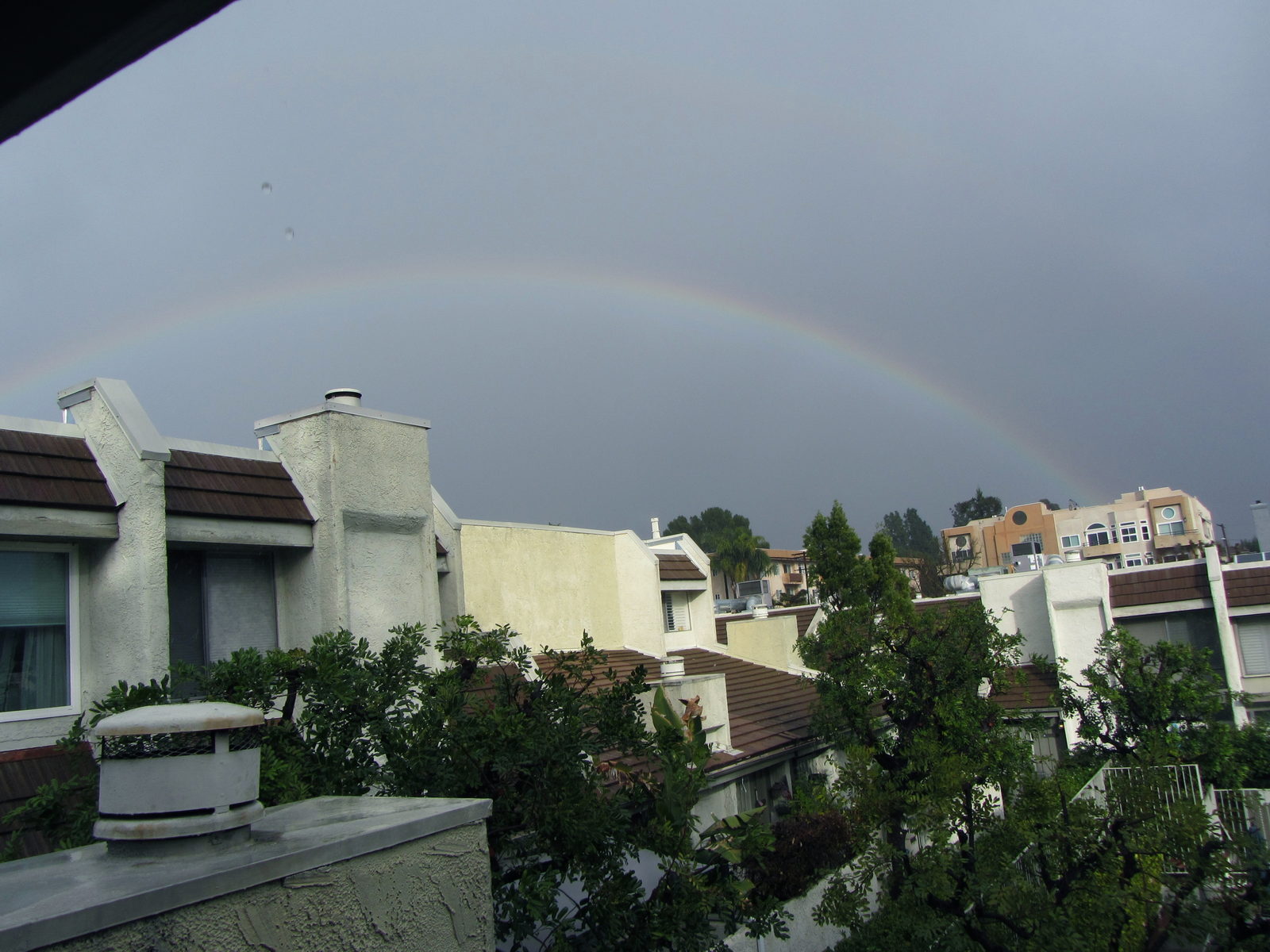 Sunday the 26th – RAIN! THUNDER! A RAINBOW! – Since Brittney’s plane was coming in around noon I wasn’t able to do my usual “sleepy Sunday” routine and veg out all day. I had to get up and get moving! As I worked I heard some large thunderclaps. It was really nice! It heralded the onset of another rainstorm! By the time Brittney got to my house it was around 1, so we sat around and got caught up on everything that’s been going on in life since I had seen her last. I was in Dallas for a convention last spring and had seen her and her sister then, but she hasn’t been in L.A. since the last Xena convention about a year ago. I put fresh sheets on the bed in the Puppet Room and she got situated. As I worked in my room I looked out the window and saw a gorgeous rainbow in the eastern sky! LOVELY! My gal Angi would be coming over for dinner later so I did some work while Brittney grabbed a quick nap. When Angi arrived I had to make sure that Spook was distracted so he wouldn’t notice that Angi’s dog Khloe was there. In his old age Spook has taken to marking spots around the house when he sees another animal, so I’m trying to prevent that by distracting him while Angi moves Khloe upstairs to my room. Once we had the pets separated we headed to Little Toni’s for dinner. The idea was that we would sit on the patio at Paty’s and watch it rain on the boulevard while we ate. But it wasn’t raining at that time, so we made alternate plans. Later it had started raining pretty good, so a WOG wasn’t possible.