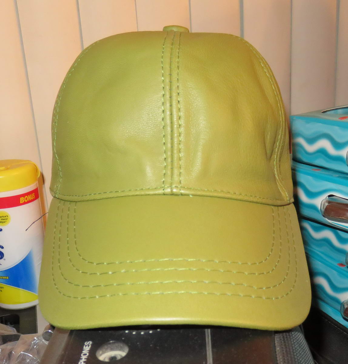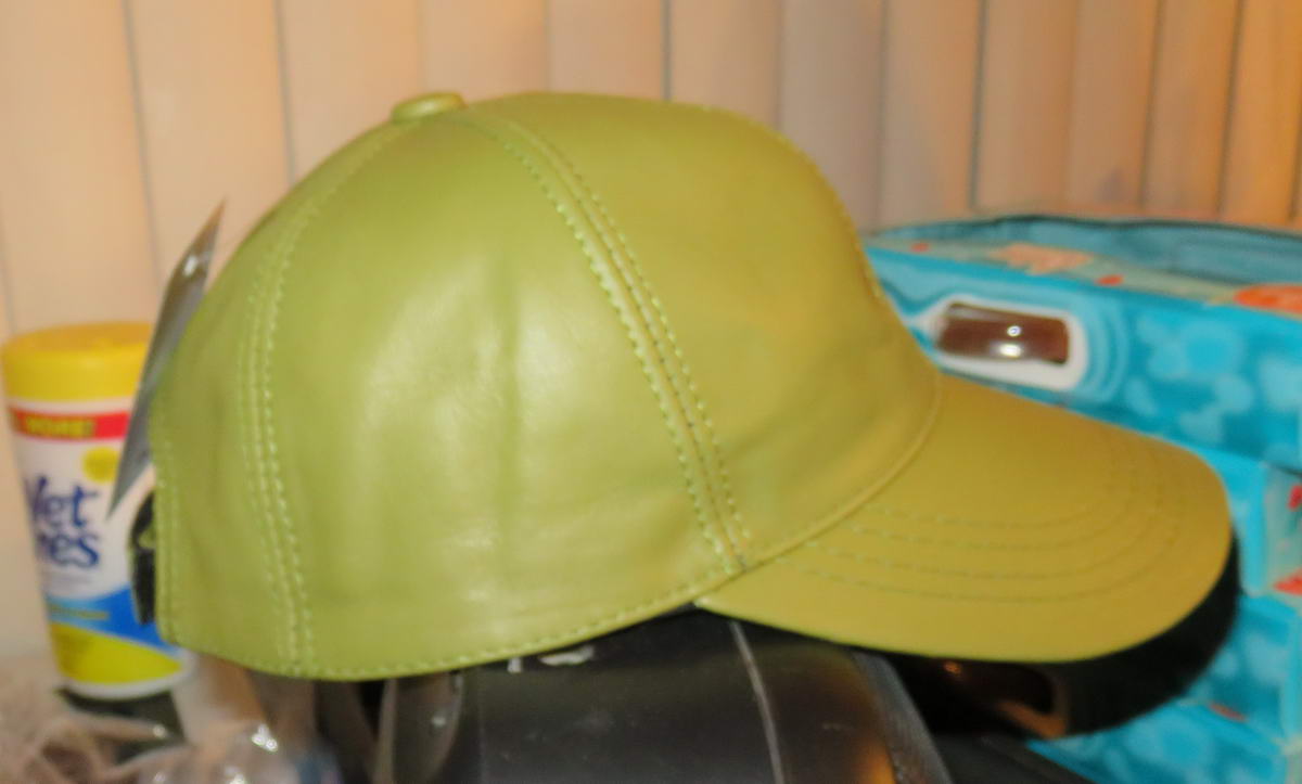 This green leather cap will soon be my Oscar the Grouch cap. I can’t believe I found a cap in a color that so closely resembled the color of the fur I have!