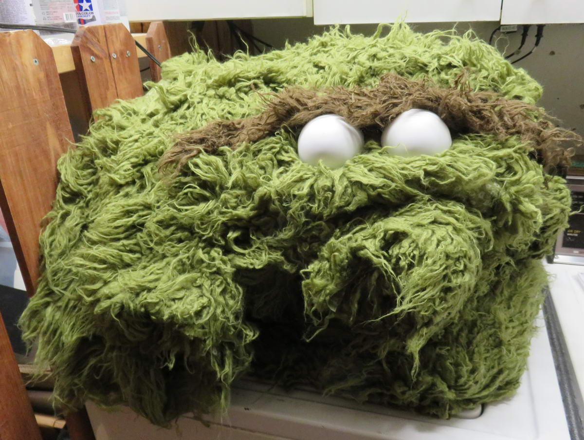 Here’s a little video demo I put together of the current progress on my Oscar head. I need to have a trigger mechanism installed to work the eyes on an equal plane, put in some finger loops, Do a little more sculpting and shaping of the foam head, and of course add the fur, but the basics are there! I’m VERY excited!