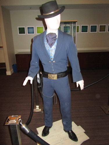 Friday the 11th – FINALLY FRIDAY! – My pal Sergio Lopez came over to finish up the hair on my Sean Connery James Bond mannequin. I wanted him to be finished so I could snap a photo and show some of the Bond girls at the show. Sara came by to take Spook to the groomer to get his nails clipped. I sped off to NBC to tape the final “TS” of the week. In the audience was my old pal John Tesh. We used to play a lot of John’s music on The Wave, and he and I even shared the air for a few hours back in the early 90’s doing an AIDS Wave Radiothon. He’s a great guy. When I heard he was in the audience I ran out to say hi. It was great seeing him again. I got back home to check on Sergio’s progress, then I went to Floyd’s Barbershop to have my hair color tweaked. If I was going to have a photo taken with 14 Bond girls I wanted to look my best! I got home, and started packing for my trip. Since the Hollywood Show has moved from Burbank to the Los Angeles International Airport area, it was necessary for me to get a room at the hotel the night before. That way I wouldn’t have to get up at the crack of dawn and fight traffic all the way over there. I got to the hotel around 10:30 and checked in. I set out my tux and took the lint roller to it so it would look its best. But that night I didn’t sleep very well. Not sure if it was the excitement, or the bed, or what. But I slept a few hours then woke up and couldn’t get back to sleep. I maybe got one more hour of sleep before I had to get up for breakfast and the autograph show.