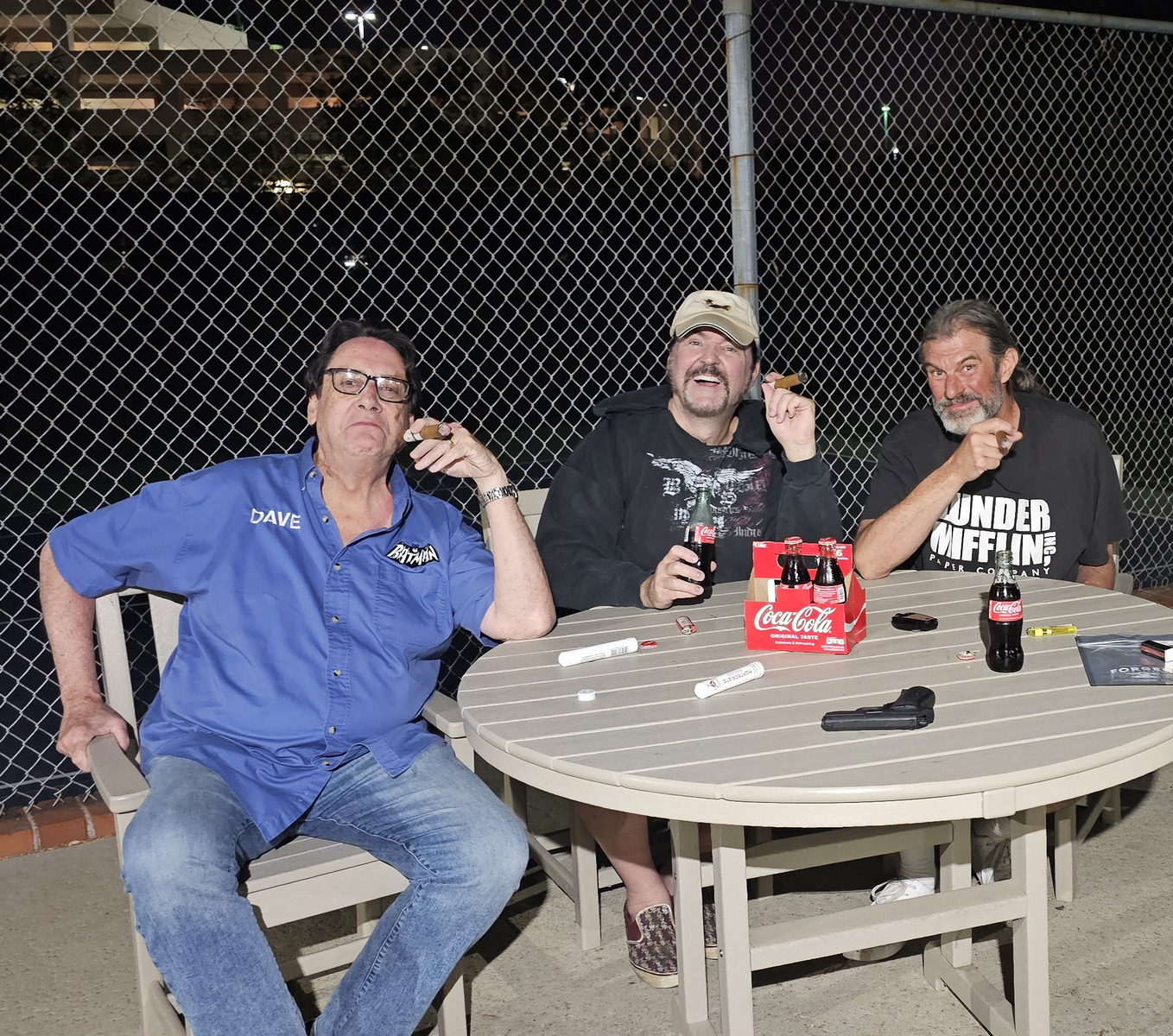 Thursday the 4th – THE 4TH OF JULY! – After having just gotten to bed at noon, I took great delight in sleeping until 5pm. Our buddy Chris came over and we chatted. We were soon joined by my friend Emily and we made hot dogs on the grill. It was a nice dinner with good friends, as we listened to all the fireworks going off in the area. Then it was time for our “Smokes & Cokes” celebration. Since I’ve known Chris & Dave (going all the way back to 1986) we’ve had a penchant for Coca Cola in the glass bottles. They’re ice cold and delicious. So for special occasions, we ice up some Cokes and enjoy them together. We also have developed a recent tradition for enjoying some nice cigars together. This is something I’ve dubbed “Smokes & Cokes.” Chris, Dave, Emily & I all walked to the center of my complex and sat in an open area and enjoyed our cigars and Cokes while listening to all the fireworks in the area. Unfortunately we didn’t actually SEE many fireworks, but we definitely heard them. The weather was perfect, and it was an amazing time with good friends. When we were finished we came back inside and looked through photo albums and re-lived some good times from back in the late 80’s and early 90’s. Since Chris, Dave and I were up so late enjoying our time, I didn’t get a nightly WOG in. But hey…it’s a holiday, right?