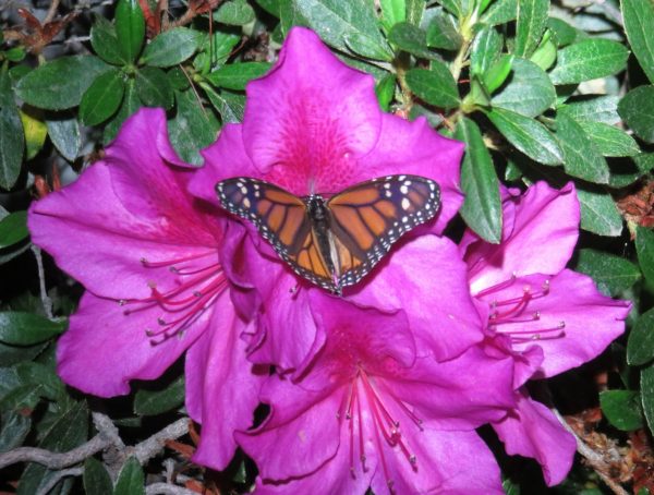 As I strolled through the complex with Roxy I saw a gorgeous butterfly inside a flower. Since it wasn’t moving I thought it might be asleep. But in fact, it had passed away doing what it loved – eating. I titled this picture, “Is there in death, beauty?”