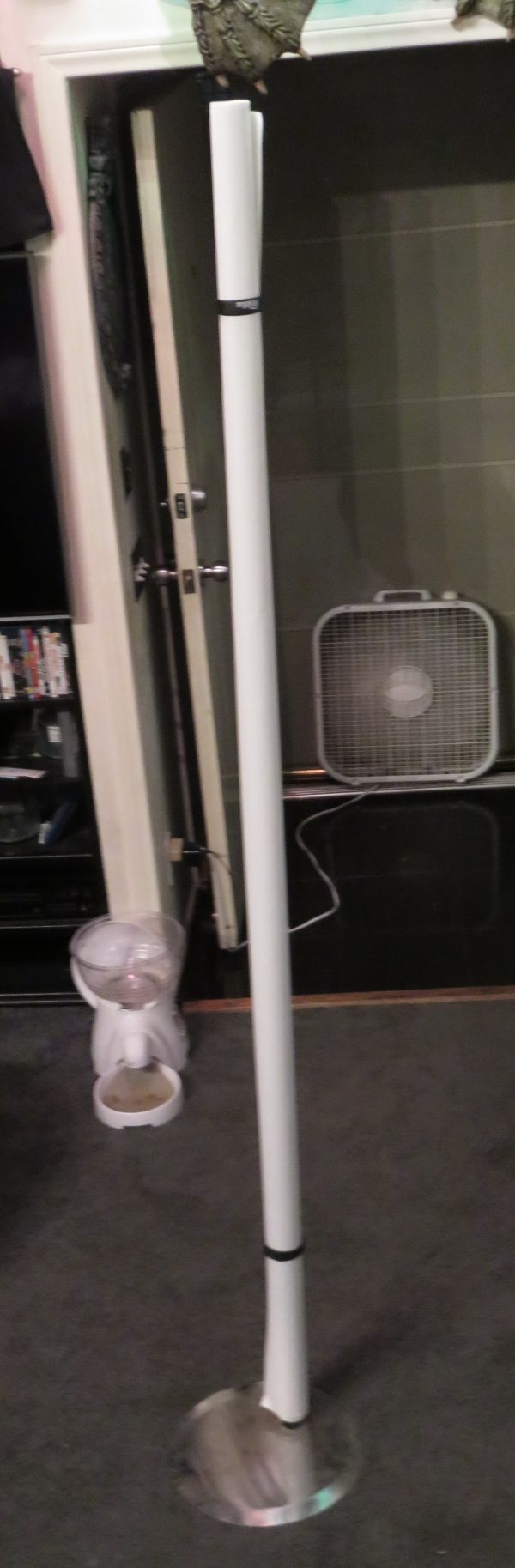 Saturday the 17th – EYES, EYES BABY! – In desperate need of soap, I took a short jaunt over to the local store and picked up that and a few other supplies. Then I worked on the pupils for my Cookie Monster eyes, painting them matte black. I think they’re going to work out great! I also worked on the eyes for my 10% Rowlf. I moved the spacing of the pupil around just a bit and now they look perfect. I haven’t finished them yet, but I’m working out the proper spacing. I’m at the point now where 1/8th of an inch one way or the other makes a HUGE difference. I stitched some ‘hang tags’ to a few more Christoween bandanas, and I started the arduous task of creating a neutral background that I’ll need for all future on-camera auditions. I had a long roll of photo backdrop paper in the garage that’s been sitting there for a long time. Mostly I’ve been using a small portion for still photo shoots, but I figured if I took 16 feet of it off the roll, taped it together edge to edge, I’d have an 8 foot long backdrop. And since the paper is 53” wide, side to side that makes it 106” – plenty for my purposes! In fact, I needed to trim it down to 90” to get it to fit in the space where I’ll be doing my on-camera auditions. But it’s not easy wrestling with that amount of stiff paper that’s been rolled up for years. It curled like crazy and I had to weigh it down with shoes and magazines to get it to lie down enough so I could run a long strip of packing tape along the seam, and join them together. Then I needed to put a 6” fold along the top so I could rest it on the top of my large video cabinet and weigh it down with heavy objects. That was no easy task either. But, after many sweaty hours, I got ‘er done! A hot shower never felt so good! I made my traditional Saturday Night Super Saint Salad and watched an episode of “The Saint” before turning in.