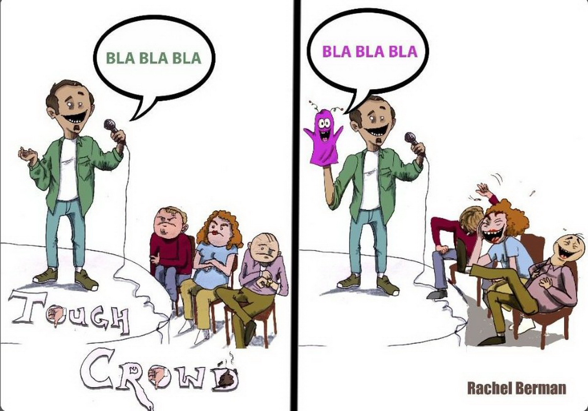 After doing an interview with an artist named Rachel Berman, about animation, comedy and related stuff, I mentioned that if you do a certain kind of comedy that some would find offensive, it could ruin your career. But if you do it through an animated character or a puppet, you can get away with a LOT. She put this concept into a visual piece that I just love!