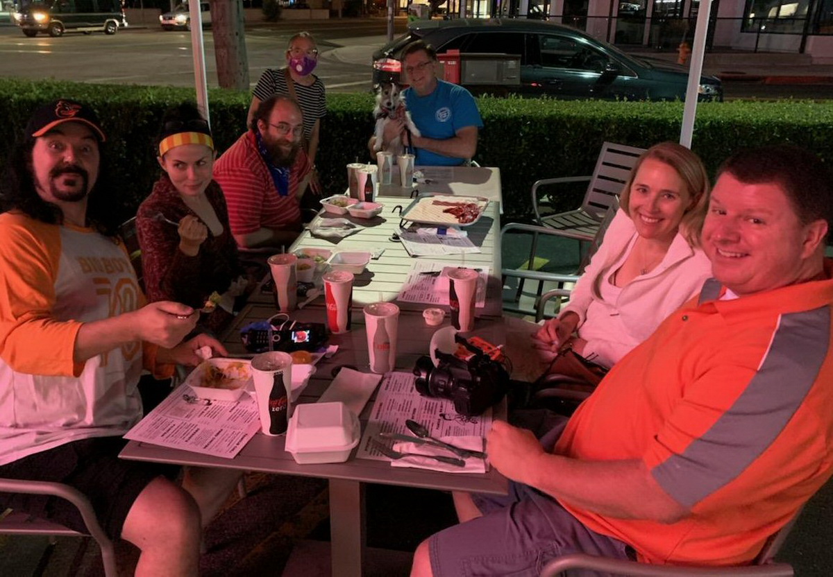 Saturday the 18th – CAR, COLOR, CLEANED AND COOL! – Because it took a while to get the parts in, it took several days for me to get my Mustang back. But my pal Sara picked me up and took me to the Ford dealer to settle up on my repairs. I went to get some groceries, and then headed home to meet up with my stylist Andie to get a touch up on my color. Her salon had just been closed again by our Governor, so a home visit was the only option. I cleaned up and put Roxy in the back of the Mustang and headed to Bob’s Big Boy to meet up with some of the old “movie night” gang for dinner. It was great seeing everyone again, and enjoying some good food under the night sky on a gorgeous evening!