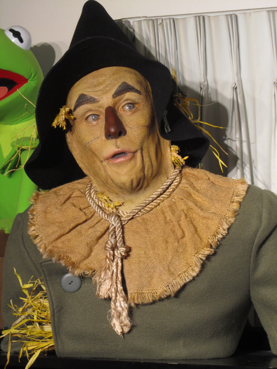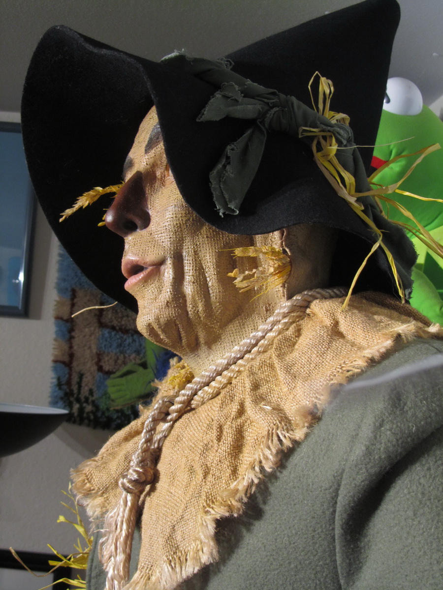 Friday the 18th – WHEAT THE HECK?! – I got up earlier than usual, around 10am, to be in Hollywood for an audition at 11. I walked Roxy then headed over to Elaine Craig Casting in Hollywood. Then I got some groceries, checked the mail at my box and headed home to meet up with Terry my contractor. I gave him the Tin Man hat to repaint. He knows much more about it than I do, so it’s in better hands. I sat down with my Scarecrow “Wizard of Oz” bust and a bunch of craft wheat. I also had my Barge glue, needle and thread, and some leather. I bunched up a small group of wheat sprigs and glued them together at the base and bound them small pieces of leather. Once the glue dried, I glued some Velcro on to the leather. I also glued small pieces of Velcro inside the openings of the Scarecrow’s head. He has a seam running down both sides of his head, and this is where little shoots of wheat and straw are poking out. That way it looks like the Scarecrow’s head is literally a sewn-together burlap bag. (The make-up genius of Jack Dawn in 1938!) Ray Bolger’s make-up featured a small bundle of wheat coming out from underneath his hat in the upper right side of his head. He also had wheat shooting out from his lower left cheek, and his lower right neck. I printed out several photos of the Scarecrow so I could try to match them perfectly. Once I had them the way I wanted them, I painted them a “Oz” yellow and Velcroed them into place. I snapped some photos and then hit the Jacuzzi to relax. I grabbed a nap from 10:30pm to 1:30am, and then got up to do some more work around the house. I made some hot dogs on the grill at 4am and retired with some more “Twilight Zone!”