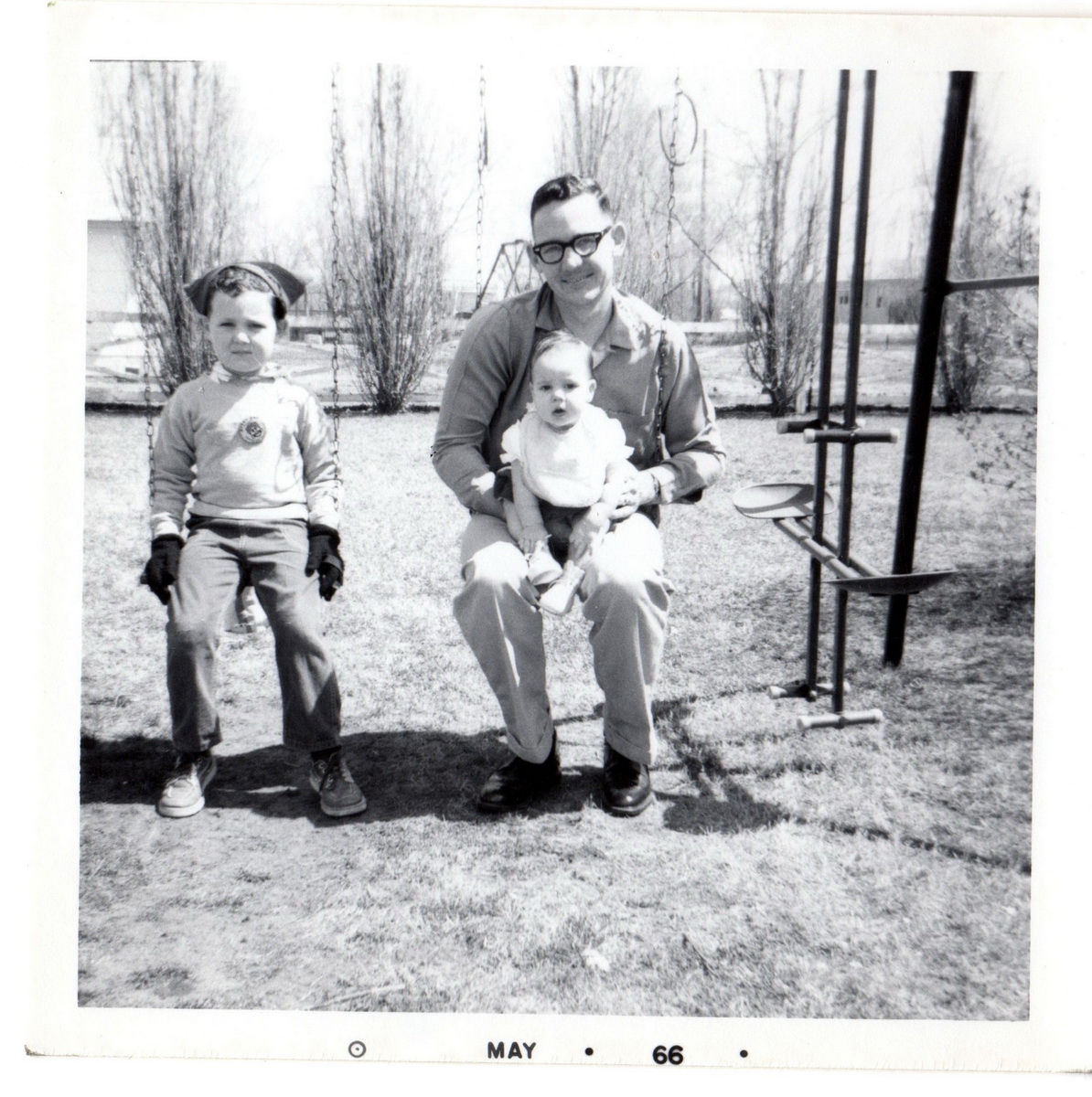 While sorting through old photos my parents also came up with this one! It’s a four year old me, just before my fifth birthday, wearing my home-made Batman costume and giving the camera my best, stoic Adam West face! That’s my dad holding my sister Peggy.