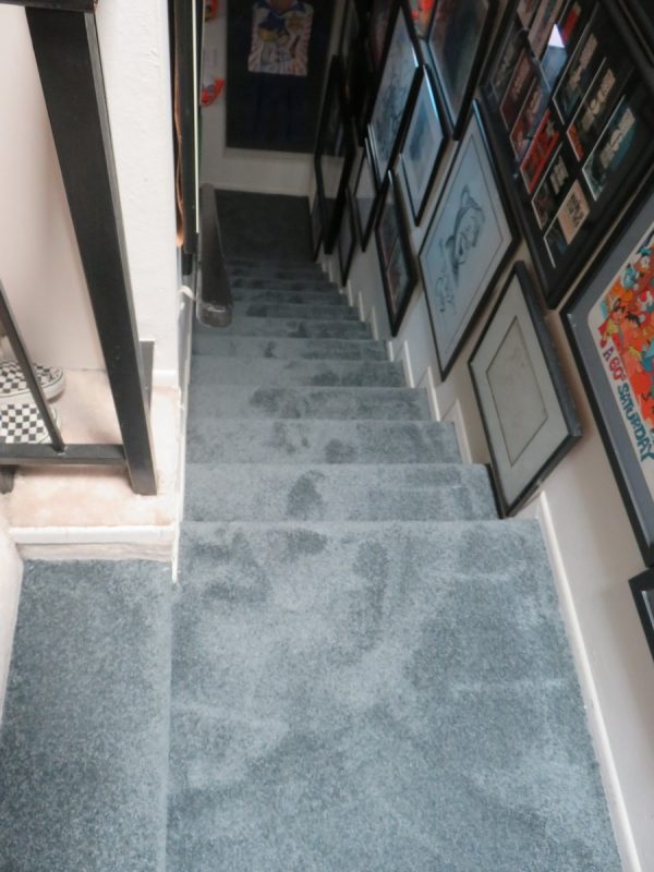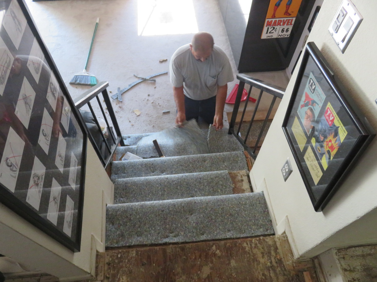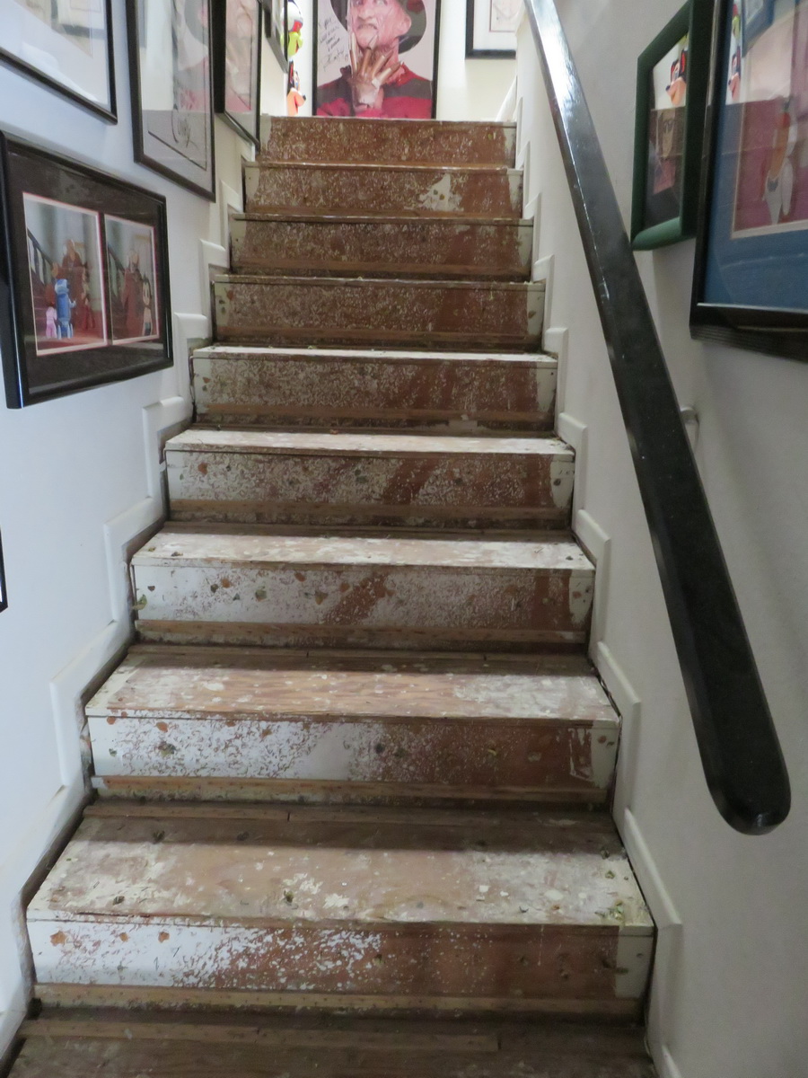 The stairway in the Aisle of Art looks naked and afraid, but soon it’ll have nice, cushy new carpet!