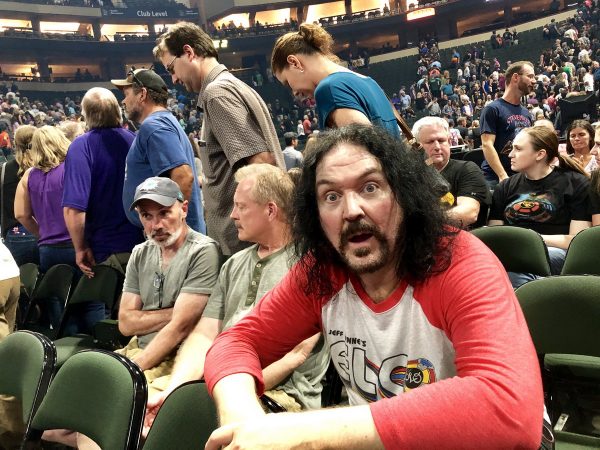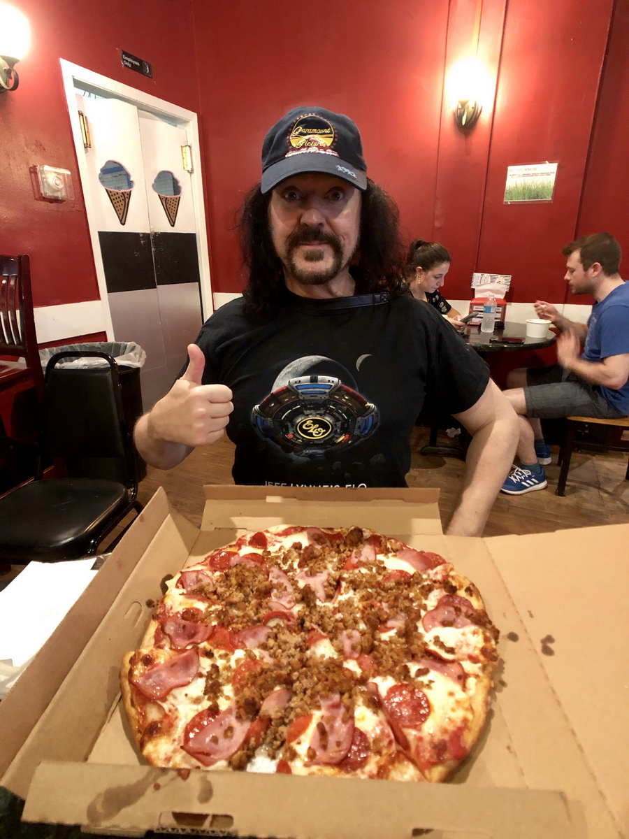 Thursday the 25th – THE MAIN EVENT! – I gave myself permission to sleep late, since we had nothing on the schedule until the concert that evening and I wanted to make sure to hit it fresh! When I woke up at 2, my pal Scott texted me that he read on Facebook that our old boss at the station where we used to work together had passed away. It was odd because he lived in the Minneapolis area, and I had e-mailed him to let him know we would be visiting, and it would be great to get together. But I never heard back. We were very saddened by the news, because he had always been very supportive of two young radio D.J.s trying to find their way in the business. Scott and Bob were on their way from Rochester and would be checking into their hotel soon. So Officer Mark and I Ubered to a place called The Grand Ole Creamery. Based on all the crap we’d been eating I was hoping that Mark would have picked out a slightly healthier place than a pizza and ice cream shop, but it’s an historic site in the St. Paul area. And because the word “Ole” was an anagram for ELO, and we’d be seeing them later that night, I figured it was a good sign. The pizzas we got were ENORMOUS, so we ended up taking most of the pizza back to our rooms. We got back to the hotel and got prepped for the show, and met in the hotel lobby at 7:15. The show would start promptly at 8 and we didn’t want to miss a minute. I was curious about the opening act, Dhani Harrison (son of George Harrison) so we certainly didn’t want to miss that portion of the show. We got into the venue, found our seats, and we were soon joined by Scott and Bob. Having known both of them for many years (Scott for 40 years and Bob for close to 50!) I knew they’d love this show! I had been raving to them about the past two times I caught ELO in concert, so I was finally going to enjoy the show with my two buddies. The concert didn’t disappoint, and we were all charged up after the show. By the time Officer Mark and I returned to the Hyatt, his girlfriend Connie was waiting for us in the lobby. The plan was that Officer Mark would fly in to Sioux Falls with me, we’d drive to Sioux Falls, see the show, and then his girlfriend would meet up with us, and she and Mark would continue a different tour with her folks. Her parents had driven to Minneapolis from Orange County in California. So the convergence worked out perfectly! I went back to my room to reflect on another great ELO show, eat some leftover pizza, pack up, and sleep.