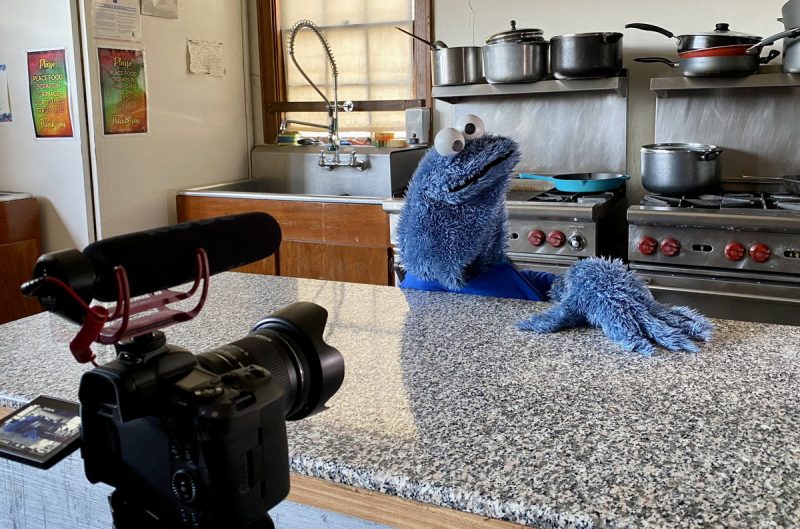 And now some fun photos from our day of puppet fun. First, Cookie’s in the kitchen and ready to eat!