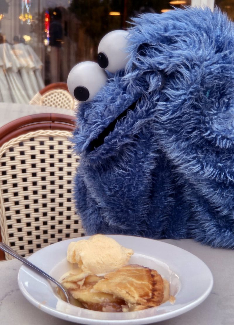 And now some fun photos from our day of puppet fun. First, Cookie’s in the kitchen and ready to eat!