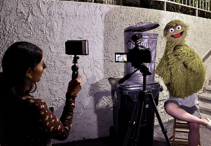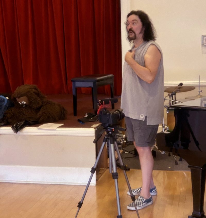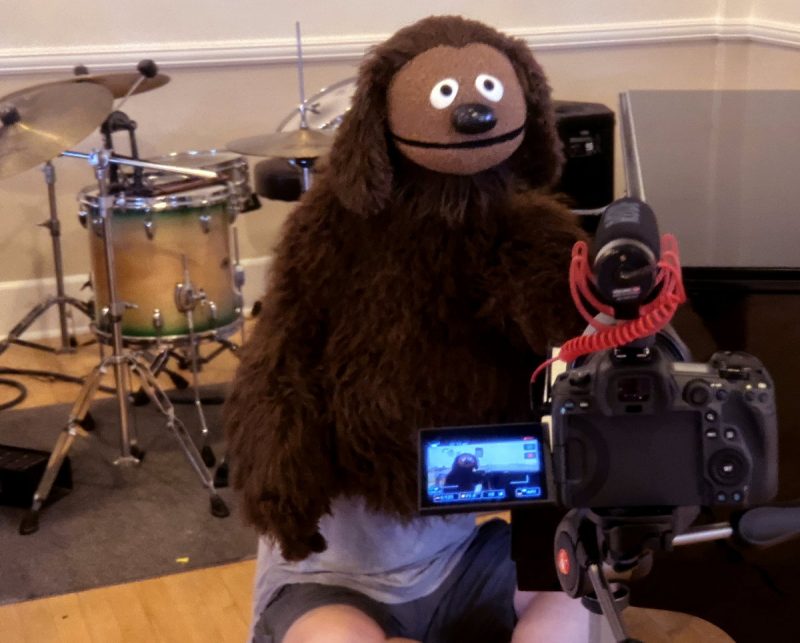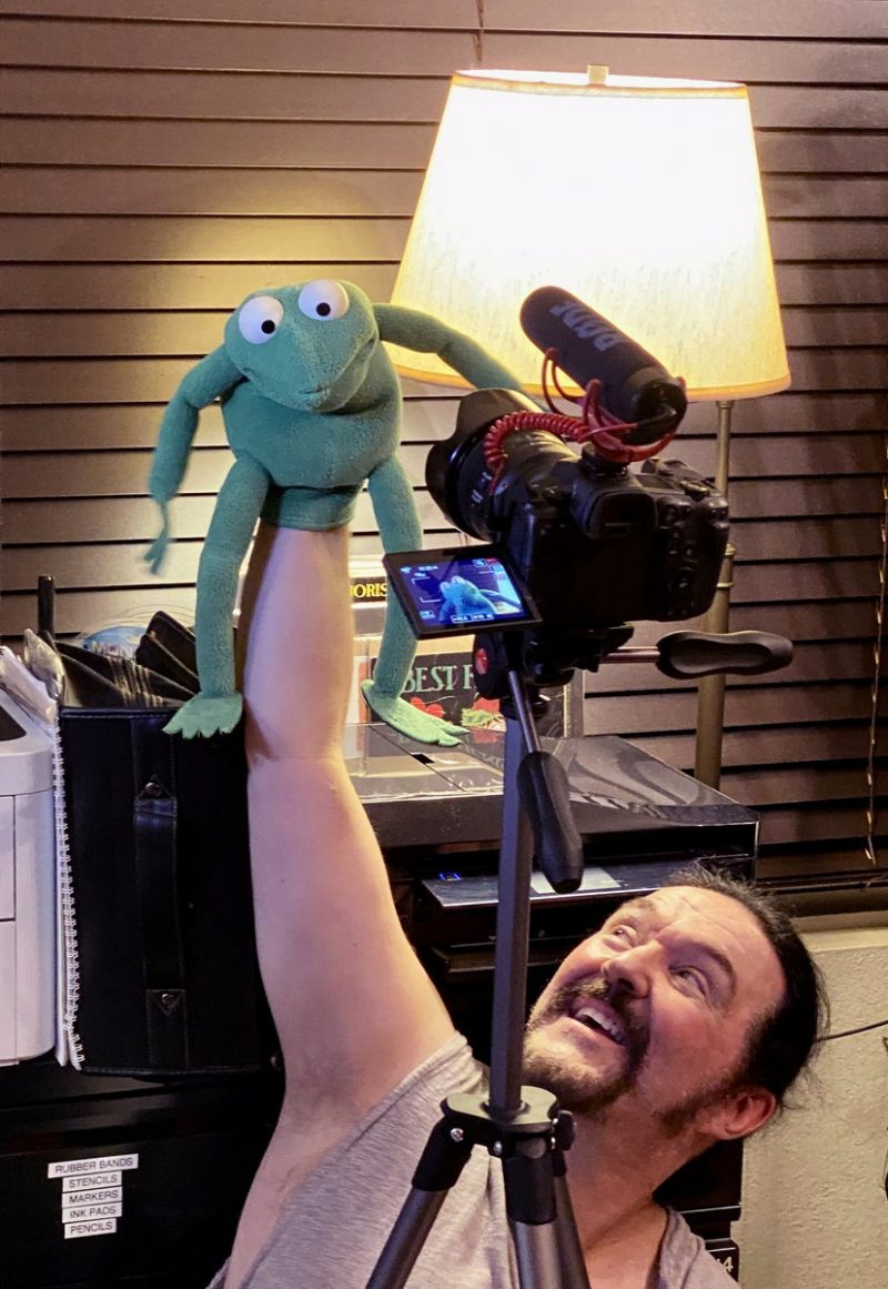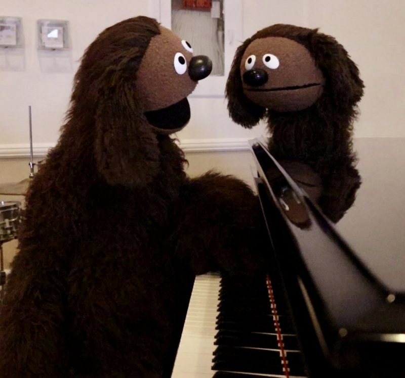 Saturday the 30th – ABSOLUTE PLEASURE! – Since I had awakened a lot earlier than I had anticipated, I decided to run over to the store quickly and get some groceries. I came back home and put them away just as my friend Sabrina arrived to help out on the shoot. The plan was to shoot in my church’s social hall from 4-6, take the crew to dinner, and then shoot from 8-10 at my house. But the guy at the church called around 3:15 and said he had just gotten there, and that I could come over earlier if I wanted. So Sabrina loaded up the car with puppet stuff and headed over. We got set up in the social hall, and soon after my friends Mark, Sara, Chris, David and Kayla arrived to help. Mark would do the camera work, David would direct, his friend Kayla would puppeteer, Sabrina and Chris would help with lighting, and Sara would provide an extra hand for Rowlf at the piano! We got all the Rowlf segments shot, so we moved to the kitchen to shoot with Cookie Monster and Beautiful Day. The segments worked out beautifully! While the rest of the gang headed to Paty’s to grab a table, I hurried home to feed the pets. Then Sabrina and I drove to Paty’s to join everyone. We got some funny Cookie Monster photos and videos at the restaurant, and even made their Instagram feed! Then we headed back to my house to finish up shooting the segments we needed. 10 puppets later, we had all the stuff we needed! Sabrina even got to perform with Lisa aka Cheer Lita for the video, and she did a darn good job! When the crew left at 10 I grabbed a nap, as I was exhausted. That puppet work is hard work! When I got up later Mark had sent me all of the footage we shot, so I started isolating it and cutting it into the “assembly edit” of the piece. What fun! Because we didn’t have a separate audio crew running audio off my headset, I would have to redub most all of the puppet’s voices. But I’ve been doing stuff like that for decades so it should be easy! Close to dawn I made my traditional Saturday Night Super Salad, and Sabrina and I watched “The Rocky Horror Picture Show.” Unbelievably she had never seen it before, but she LOVED it!