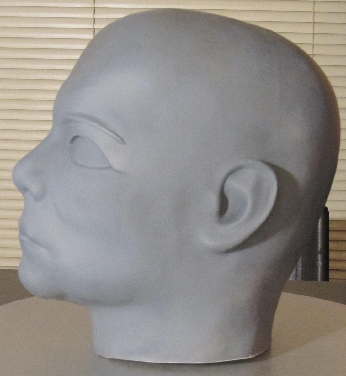 Because of a generational loss of detail, which occurs when you make multiple copies of an item, it was necessary for Jim to refer to pictures of an original William Shatner mask so he could sculpt back in some of the lost detail with clay. Also, several flaws in the original copy made it necessary for Jim to do a little patch work to bring back the smoothness of the original Don Post sculpt.