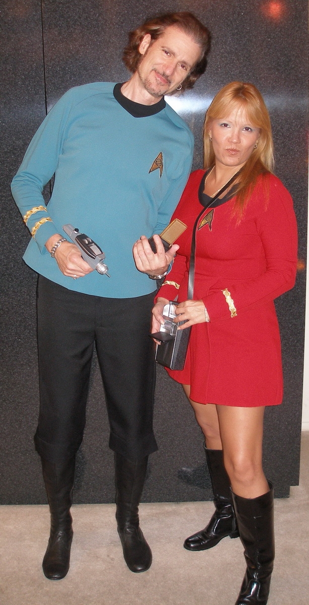 I already had the costume, (seen here being worn by my pal Bruce Kulick) which had been hanging in my closet for years. Several years back I had seamstress Kathy Pillsbury create Kirk, Spock and Scotty tunics using the same polyester fabric (color matched with swatches from the show’s wardrobe) they used in the later seasons.