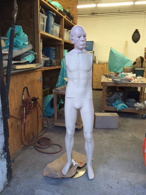 Once the piece was finalized he transplanted it on to the torso of the mannequin. And then he airbrushed a base coat of paint on to the face.