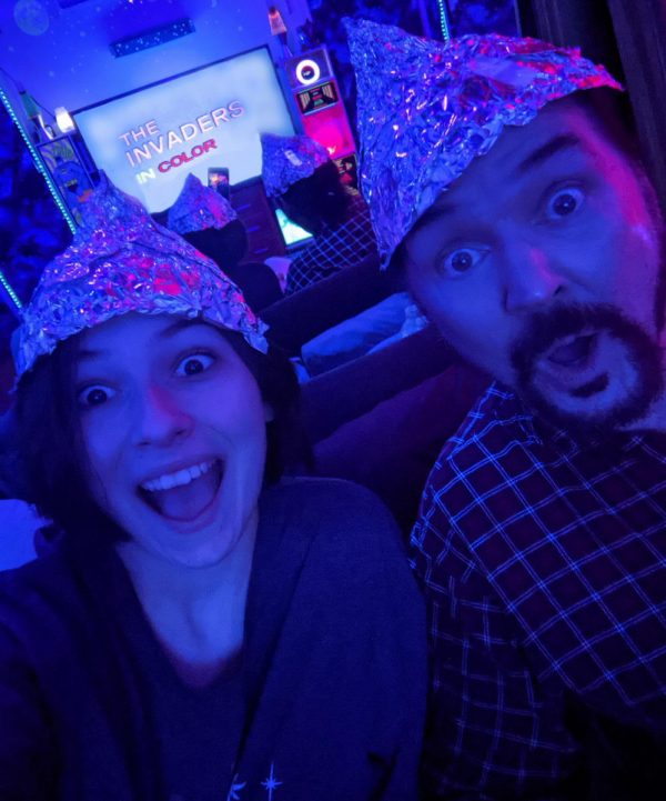 Thursday the 4th – TRADEMARK TALK! – A two-hour Zoom call with my trademark attorney Stephanie was the first order of business for the day. We’re strategizing how to bring a few pieces of Christoween merchandise to the marketplace. We came up with some really great ideas, so stay tuned! My friend Michelle moved to L.A. the day before, and today she bought a car to get her around the city. She drove it over to show it to me and she drove us to lunch at Paty’s. It has very low miles and is a 2020 model. She got a great deal! We headed back to Planet Wallywood so I could do my nightly auditions. Later we made some food and I showed her an “Invaders” episode. We even made some tinfoil hats just for the occasion!