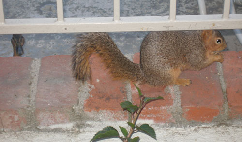 A different kind of Peking Duck…a PEEKING duck! She’s peeking up over the wall to see if there might be any good stuff for her like the squirrel’s getting!