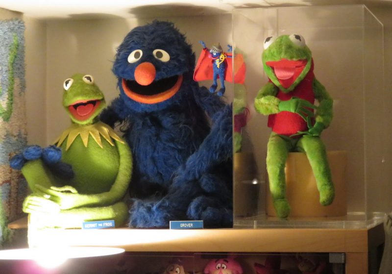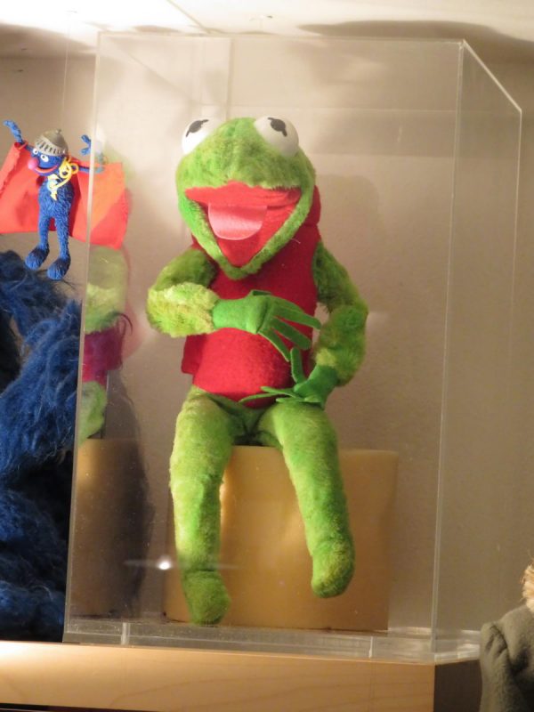 Here is how the vintage Ideal Toy “Kermit” looks in the cabinet. I’m going to eventually cover the foam rubber ‘stool” with a dark green fleece.