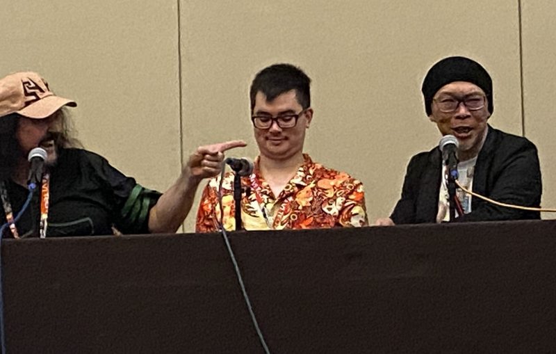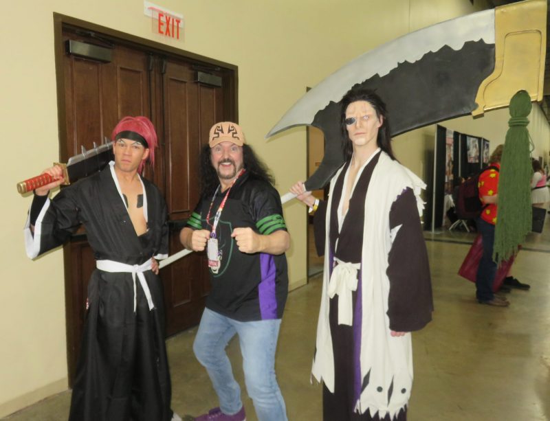 Saturday the 30th – WEEBCON: DAY 2! – While my lines weren’t necessarily long, it was steady business all day. Brittney and her sister would be coming by the convention later, but nobody had any cell signal in the convention center. So their wi-fi was spotty, and the cell signal was virtually non-existent. It made it very difficult to communicate with anyone about coming to the show. Add to this the fact that the producers of the show don’t hand out program booklets any more. All of the scheduling is done on-line. So if there are panels or activities scheduled, nobody has any clue because they are unable to get on-line in the “dead zone” convention center. It seemed very illogical and bizarre to me. That would explain why nobody seemed to have heard about the panel with Ito San and myself. Luckily Brittney and her sister arrived just in time for the panel, and we headed to the ballroom to start the panel. But I was VERY disappointed to see only about 20 people in the panel. To have such an esteemed guest from Japan, and to have BOTH voices of Renji from “Bleach” seemed to me that it warranted a HUGE crowd! Many of the people in the panel were people that I personally told about it at my table. I felt a little embarrassed for our Japanese guest. He may have mistaken the low attendance for a lack of interest in “Bleach” in America; which isn’t the case at all. However, I think he had a lot of success at his signing table, so I’m sure he knew it was a fluke. Another screw-up was the fact that nobody was there to moderate the panel! I’m not sure if the Weebcon people were just so overwhelmed with stuff they forgot, or if screw-ups like this were commonplace. Oh well, I offered my services to moderate and be a panelist. So it was me, Ito San’s interpreter Chester, and Ito San. Chester sat between us and interpreted the questions from the audience. Despite the small crowd, it was a very enthusiastic crowd. We were asked to do our famous call-outs – “Bankai! Hihio – Zabimaru!” – and we were happy to do it. As the originator of the role I felt it was only right to have him go first. Having heard him do it for so many years in the recording sessions, and now seeing him perform it live gave me chills! When he finished I said, “Oh hell no. I’m not following that.” But I soon followed it up with the English version of the famous callout. The small crowd seemed to really enjoy it. Earlier in the day I spotted a wonderful Renji cosplayer that I invited to come to the panel. It was great that Ito San and I got a few pictures with him. I really hope the producers of this convention stop over-relying on internet notifications (particularly foolish, considering you can’t get very good signal in the convention center) and go back to program books. I’ve saved every program book from every San Diego Comic Con I’ve ever been to, and I explained to one of the workers that they become souvenirs to the fans. Also, you can sell advertising in them and make some extra dough. Plus, when you can’t get internet signal, it allows the fans to still stay in touch with what’s going on. I hope they take my advice and improve their structure somewhat. I was very disappointed. I headed back to my table to continue signing, and Brittney and her sister took off because Brittney’s sister’s leg was starting to hurt. So I’d be all alone for dinner that night, which was fine because I was pretty beat. I just wanted to get a pizza and go to my room and stare at the wall. There is an Italian restaurant in the hotel, so I headed down there to see about getting a pizza to go. As I was standing in line I saw my pal Bryce with a contingent of people, including Ito San and Chester. They asked me to stay and eat with them. There are NO accidents in life! It was great chatting with them all, as they were using a universal translator app on their phones to have a conversation. We’re living in “Star Trek!” When I learned that Ito San would be returning to Japan the following morning, I bemoaned the fact that I hadn’t had him sign anything. But I remembered that I had on my custom Renji cap, so he was kind enough to sign the bill of my cap. We got some great photos and had our dinner. Ito San wanted a Heineken, but the restaurant was all out. They were also all out of pizza. Very strange. Did they not know a huge convention was coming to the compound that weekend? So Ito San ordered a Bud Light. We laughed at the fact that Bud Light sounded a lot like Bankai – Renji’s famous call out. So in the tone of the “Bankai” call out, Ito San said “BUD LIGHT!” It was an absolutely hilarious moment that I will never forget. Interestingly enough, the Japanese and English voices for a character called Rock Lee were also at the table! You just can’t write this stuff! Utterly amazing! We all took some photos together, said our goodbyes, and we headed back to our rooms. I really hope Ito San returns so we can do some more appearances together as “The Renjis.” When I got back to my room I started packing up for my trip back home on Sunday night.
