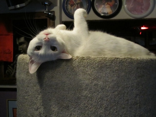 Friday the 23rd – FRIDAYLICIOIUS! – Busy day! I got a hotline call early for a quick “TTS” bit. It was only 3 words, but I did it several different ways to give the writer Anthony a choice. I jumped in the Gran Torino and sped off to Kalmenson and Kalmenson for an audition. Then I went over to Al & Ed’s Auto Sound to see why the satellite radio in my Torino kept losing signal periodically. Apparently the system I have is meant to have the antenna mounted outside the car, but mine is on my dashboard. Having a 3″ X 3″ black antenna thingie on the Torino would ruin the look of the car. So we’re considering other options. I stopped by Guns Direct in Burbank to drop off my 3813, my model 25 and my Taurus .357 for a good cleaning. I got home to meet with Terry my contractor so he could do some painting. But we were starving. We stopped at McDonald’s for a quick lunch, and then went to meet my realtor Randy to see a house. But the realtor representing the seller never showed up, so after 10 minutes of waiting we split. We had a lot to do and no time to waste. The mailman brought some gold adhesive-backed Mylar I had ordered, so I immediately put it on my little metal “flag” that I had on my Adam West light. The ring around the light is gold metallic and I needed the metal flag (something lighting guys use to help direct a light more specifically) to match it. So I applied the Mylar and installed the flag. It looked perfect! Terry finished painting and we started to plan some more for the upcoming Robo-Elvis display. The stage platform is finished and he’s ready to mount the mannequin and run the wires. There are two speakers that will be installed in the platform, and we thought it might be fun to have Elvis’ TCB logo painted on the speaker grilles. I also want to mount a framed display of a photo I took of Elvis at the concert I saw him perform at. I’m also including my ticket stub in the display as well. So I mapped out the layout and headed to Fast Frame before work to get them started on it. I rushed off to NBC and did a comedy bit, then rehearsed the opening and we taped the show. My pal Dan Roebuck had some friends at the taping that day, so I met up with them and gave them the nickel tour backstage. Then I drove them over to Michael’s Bar and Grill in the Torino to meet up with Dan for dinner. I got home and fed Spook and then took a nap. It was going to be a big weekend with a special houseguest, so I wanted to prepare the place. I spent about four hours cleaning up my garage and throwing stuff out. I also made a little bed in the back of my Mustang so I could go to pick up my guest on Saturday. I was hoping she’d be comfortable in the back on the ride to my house!