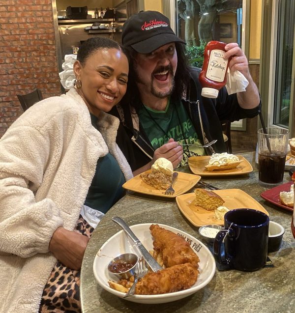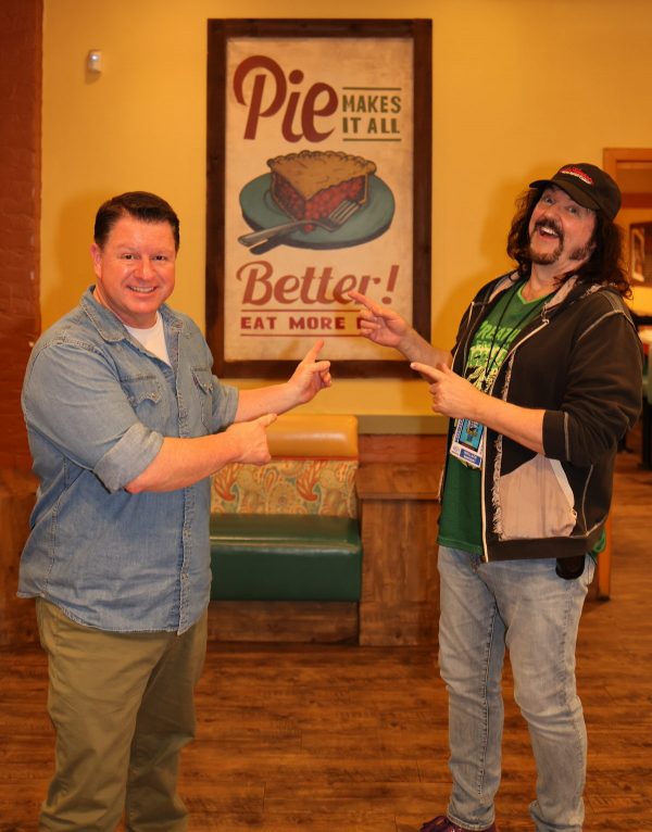 Panels, puppets and Polly’s Pies. What a perfect day! Officer Mark and I prepare to dine!