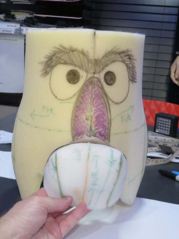 I find it always helps to draw the character’s face onto the foam head to get an idea of eye and nose placement.