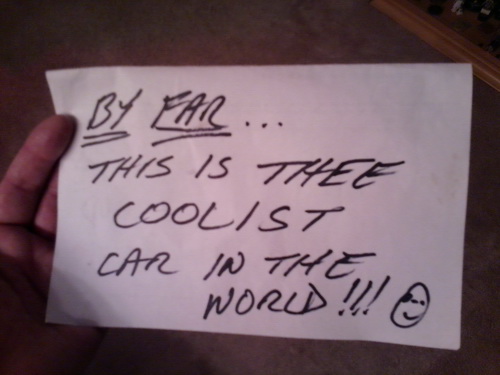 After coming out of Ernie’s Taco House on Sunday night, I hopped in my Gran Torino and headed down the road. After a few blocks I saw something fluttering underneath my windshield wiper. I pulled over and stopped so I could see what it was. It was a note that was left for me while I was inside having dinner…