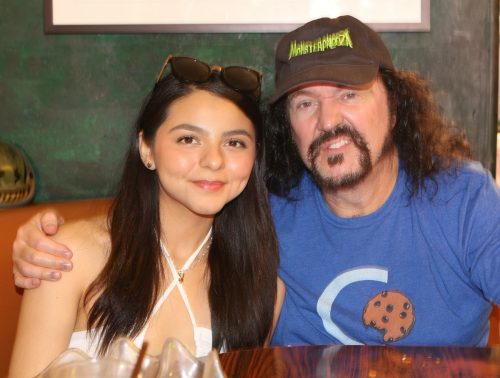 Sunday the 8th – DOGGONE or HAPPY MOTHER’S DAY! – When I awoke Emily and Ella had taken off already, as they had a busy day back in L.A. planned. Sabrina and I walked over to Las Casuelas in downtown Palm Springs to meet up with Officer Mark and Miss Connie for lunch. We were afraid it was going to be packed for Mother’s Day, but we had gotten there so early we got right in! And, as a bonus, we got the Elvis table; the table where Elvis used to sit whenever he visited the restaurant during his Palm Springs days. We walked down to get some Dole Whips and met up with some friends of Officer Mark’s. Then Sabrina and I went shopping and had some fun walking around downtown. When we got back to the hotel Sabrina wanted to swim some more, so we hit the pool. The previous day, I noticed a little girl who seemed smitten with Sabrina and would follow her from the pool to the Jacuzzi. But they never chatted at all. The little girl had returned to the pool with her family, and since the pool was less busy today, she got a chance to finally talk to Sabrina. They became fast friends, swimming, enjoying the Jacuzzi, and doing tricks in the pool. I could tell this little kid was a fan of Sabrina’s the day before and I was happy they finally got some hang time together. She seemed like a cool little kid. Later Sabrina and I headed back out to Palm Desert to get Shirley to take her to a Mother’s Day dinner at Sherman’s Deli. After dinner I took her to a store to pick her up some grocery supplies and then dropped her back at her place. Earlier in the day my phone went off with an alert about sandstorms and 0 visibility! While we stayed mostly to the city roads, we could see in the distance that the horizon looked all mucky from the blowing dust! Wild! I returned to my room to discover that the maids, while cleaning the room, threw away two boxes that I need to transport my snacks and microwave. I know they must’ve looked like garbage, being empty boxes, but I had to contact the manager to get them back! I would need them for the loadout on Monday! Luckily, they located them and returned them. I need to mark them in the future as NOT GARBAGE or NOT BASURA! Even though the evening turned out to be very pleasant, once the wind subsided, I have to admit that Roxy was still on my mind. She’ll be 14 this coming Tuesday and every moment I get with her is precious. Sabrina and I enjoyed the balcony and at one point she said, “I feel high!” I laughed and said, “Welcome to my world.” When a person her age can feel high and not have any drugs or alcohol involved, it’s a pretty remarkable thing. The visuals of the night time desert landscape, the weather, the nice music and environment I create for my balcony time DOES get me high every time! I love it, and I’m glad somebody else has embraced it as well!