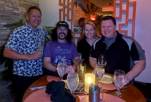 Friday the 6th – BDAY! – As a birthday treat to myself I slept all day. I really needed it given the schedule I’ve had over the past two months! I drove over to get Shirley and take her to dinner at our favorite Italian place in Palm Desert called Papa Dan’s! I went back to my hotel and checked my e-mail and I got an amazing birthday video from my pal “Weird Al” Yankovic. Apparently there’s some company he’s involved with to do these really great video greetings with high production values. I think I know how the whole thing was accomplished, but I’m not sure. Even still, it must’ve been a HUGE amount of work for Al to record videos of all those names to be put in the videos! You can check it out here: Weird All Sings Happy Birthday to Wally. My friends Officer Mark and Miss Connie had arrived in Palm Springs and I met them over at the Tropicale. Our friend Liquor Mark was also there and we had a blast chatting. I walked back to the Hyatt to enjoy a special birthday cigar given to me by my pal, Voice Director Jonathan Klein. It was a nice Cuban he gifted me with several weeks ago, and I told him I’d save it for my Palm Springs getaway. My actual birth time is 11:32pm (Central time) but I lit it up at 11:32 Pacific time. While I enjoyed that excellent cigar I ordered a pizza at NYPD and then took it to my room to eat on the balcony. The night was FANTASTIC! Warm, quiet, and star-filled! Amazing! This truly is my happy place!