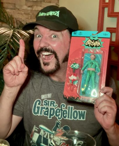 Monday the 2nd – EXPENSIVE DOOR STOP/PAPERWEIGHT COURTEST OF THE APPLE CORPORATION! – My A/V guy Brandon came over to install my new region-free Blu Ray player in the Tranquility Zone. The one he removed wasn’t region-free, and I have a Zone B Laurel and Hardy film on Blu Ray that I want to see. But he was having trouble finding the codes to program the remote so he’s coming back. He’s also an expert with all sorts of technical things, so we set about trying to revive my iPad in an effort to try and get it to talk to my “classic” version of the iTunes program again. It just stopped talking to my iTunes program about a year ago. After an hour or so of investigative work, we determined that it’s now just a really expensive door stop or paperweight. I believe Apple’s policy of “planned obsolescence” should be illegal, since I paid for their project and I expect it to always be useful. But no go with this, unfortunately. It’s why I steer clear of most Apple products. Luckily my classic iPod still works with my classic iTunes program and I hope that will always be the case, as a lot of the newer MP3 players just don’t have the storage capacity that an iPod has. I drove to my mailbox to get my packages, and found that I had received my new Walkman MP3 player (speaking of MP3 players) but it only has about 8GB of storage, so I’m using this exclusively as the music source for my Gran Torino. It will only have 70’s tunes on it that I can shuffle and listen to while I drive. I also got the replacement puppets for my Cap’n Crunch puppet set I bought for myself as an early birthday gift. The Cap’n, Seadog and Brunehilde were slightly damaged in the original set I got, but it just so happened that a mint set of those three characters showed up on eBay. I snagged them, and now I have a near mint set from the 60’s! I went to the cleaners to drop off some stuff, drove to Best Buy to return the Bose speakers I bought a few weeks ago for my computer (they sounded too muddy to be useful to me), hit Wendy’s for dinner, Krispy Kreme for desert, and went to my auxiliary garage to swap cars and get my Gran Torino. But once I got to the garage I had noticed that somebody was drawing pictures and graffiti in the dust on some of the classic cars there. I didn’t feel comfortable leaving my Mustang there since I didn’t have my car cover along to lock it up. I didn’t like the idea that people were putting their hands on the cars, so I’ll do the swap tomorrow. I got back home, rested a bit, and later I put the replacement Cap’n Crunch character puppets up in my cabinet. They look fantastic! I cleaned out a lot of stuff I’m no longer interested in to make room. The Batman figures I bought over the weekend at the Toyzilla signing also got put in one of the cabinets on display. I recorded my auditions, wrote Wally’s Week, and spent the rest of the night loading 70’s songs onto my Walkman for my Torino ride!