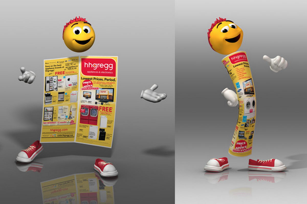 Here’s a shot of the animated character I did for the HH Gregg stores a few years ago. Oddly enough, during a web search for this mascot character, a fair amount of fanart of this character pops up! Wild!