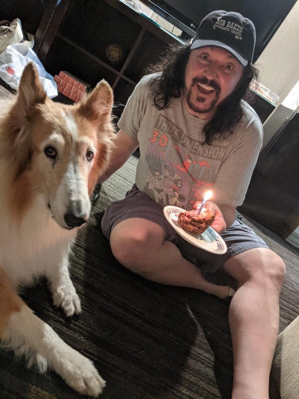 Thursday the 6th – 60?! REALLY?! – I slept in until late afternoon. When I got up I walked over to Enterprise to get my rental SUV for my weekend trip to the desert. The gal who rented me the SUV told me that Enterprise was originally named for the starship Enterprise when “Star Trek” creator Gene Roddenberry started the company. Though I thought that sounded a little too good to be true. (Come to find out it was. After doing some of my own research I found out it’s not true. According to Wikipedia, Enterprise was started by Jack C. Taylor in 1957 and named after the Enterprise aircraft carrier used in World War 2, the ship upon which Mr. Taylor served.) I packed up the Jeep Compass with all of my stuff, recorded my nightly auditions, got a Domino’s pizza, and then filled out some paperwork for a new, ongoing video game gig that I’ll have throughout the summer. My house sitter arrived around 8:30 and Roxy and I hit the road around 9:15 after getting the gas tank filled up. By 10:45 we arrived in Palm Springs and I turned on my favorite desert AM radio station KYXY. On my birthday, at the start of my birthday vacation weekend, the song that played was Roy Clark’s “Yesterday When I Was Young.” WILD! Of all the strange coincidences! But then again, I don’t really believe in coincidences. It’s a great song! I tried calling the Palm Springs Denny’s to place my usual order, which is tradition on my first night in Palm Springs. But they didn’t answer. That isn’t uncommon for Denny’s, so I figured I’d just stop by and place my order in person. But they were closed for maintenance! Bummer! I got to the Hyatt and checked in, and Roxy and I got settled. I got everything set up and watched stars on the balcony while listening to my special Palm Springs playlist. A new, ongoing gig throughout the summer, a Domino’s pizza, and a nice night time drive through the desert for relaxation in Palm Springs – all in all, a great birthday!