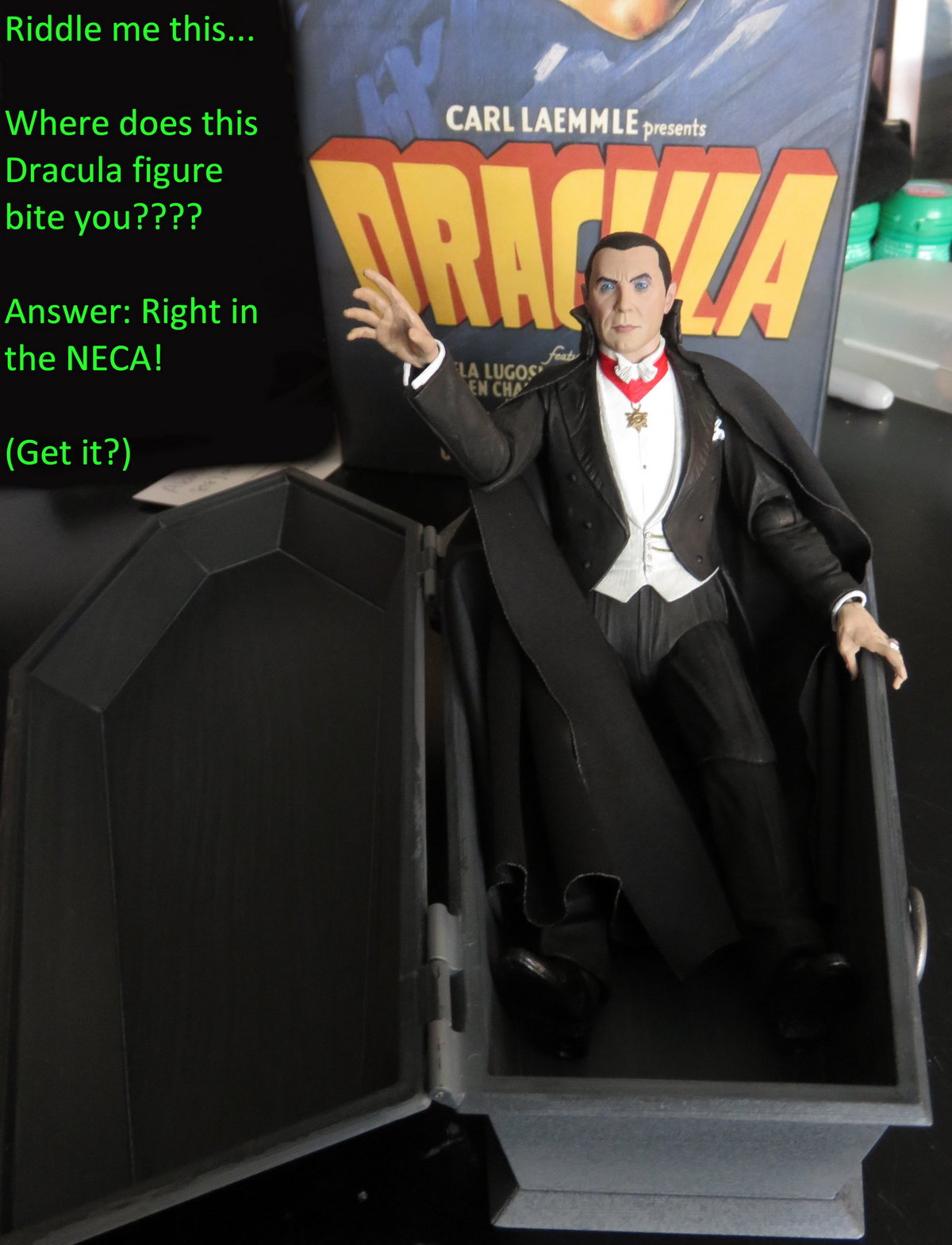 Also for my birthday, my pal Mr. Awesome gave me this totally cool Dracula figure, complete with a coffin! He looks great in my display case!