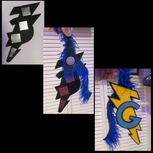 Friday the 19th – LOVELY LOGO! – The first stop of the day was Foam Mart, where I would be inspecting the templates they created for Super Grover’s knight’s helmet. I took the puppet in, but the two templates they made were way too small for his head. Given the way they took the measurements on Monday, I knew that it wouldn’t give them an accurate representation of his head contours, so I wasn’t all that surprised. They said they would remake the templates and I could see them next week. But with Monsterpalooza starting two weeks from today, I was running short of time and getting a bit nervous about this process. I needed to make a Plan B. I drove over to the local Wendy’s to get lunch, and then drove to Hobby Lobby to get some yellow-gold felt and light blue acrylic paint. I stopped by my box to get my packages and then headed home. I had fully intended to do my daily walk, but I had walked so hard the previous day my muscles were a bit sore and not having it. So I took a quick nap before meeting a friend for dinner at Ernie’s Taco House. After dinner I came home to work on Grover some more. I traced the logo on to the felt, inked the outline, painted the G with blue acrylic paint, and cut it out. It looked pretty sweet! I also cut a small metal piece to test the magnetic strength of the magnets that will hold the logo in place on the puppet. The small metal pieces on the back of the logo will attach to the puppet via small magnets sewn into the body of the puppet. I figured it would be a better way to attach it than using pins, or permanently stitching it to the puppet.