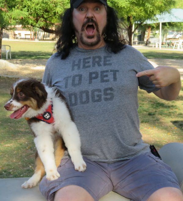 Friday the 24th – LOUD, SMOKY IDIOTS! – At noon I woke up to take Roxy out. Then I slept a few more ours until 3, when Roxy and I headed down Palm Canyon Drive to our favorite local eatery…Ruby’s Diner. It was a stunningly gorgeous day (considering it was raining back in L.A.) and we enjoyed sitting on Ruby’s patio watching the people go by. We walked back to the hotel and napped some more. A little later that night my pal Brittney Powell drove out to join us, and we went across the street to get some food at NYPD pizza. When I got back to the room I noticed the people in the room beneath mine were on their balcony smoking and talking very loudly at 1 in the morning. The hotel has a strict no smoking policy, and their loud, inconsiderate chatter was very annoying. Luckily I know the night time guard fairly well, so between he and the night time desk clerk Esther, the problem was solved very quickly. Since the day was a lot warmer, I didn’t need to get the blanket out until near dawn, as the night was very pleasant for sitting on the balcony relaxing. It was fun watching all the night time climbers traverse the mountain behind my hotel. I can’t make out specific people, but the head lamps they wear let me keep track of their progress. One of these nights I’d actually like to do that, but I’d want to go with an experienced hiker.