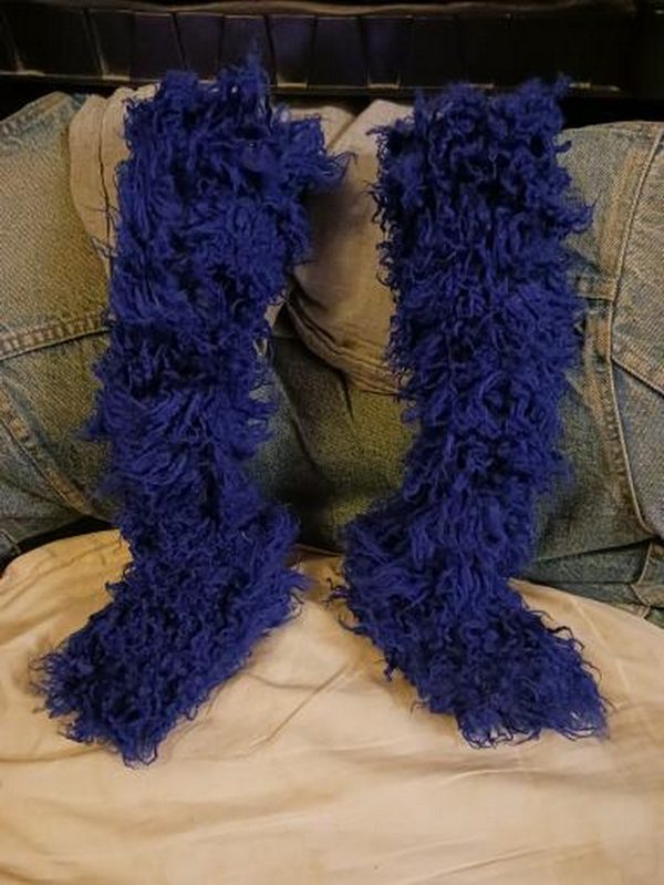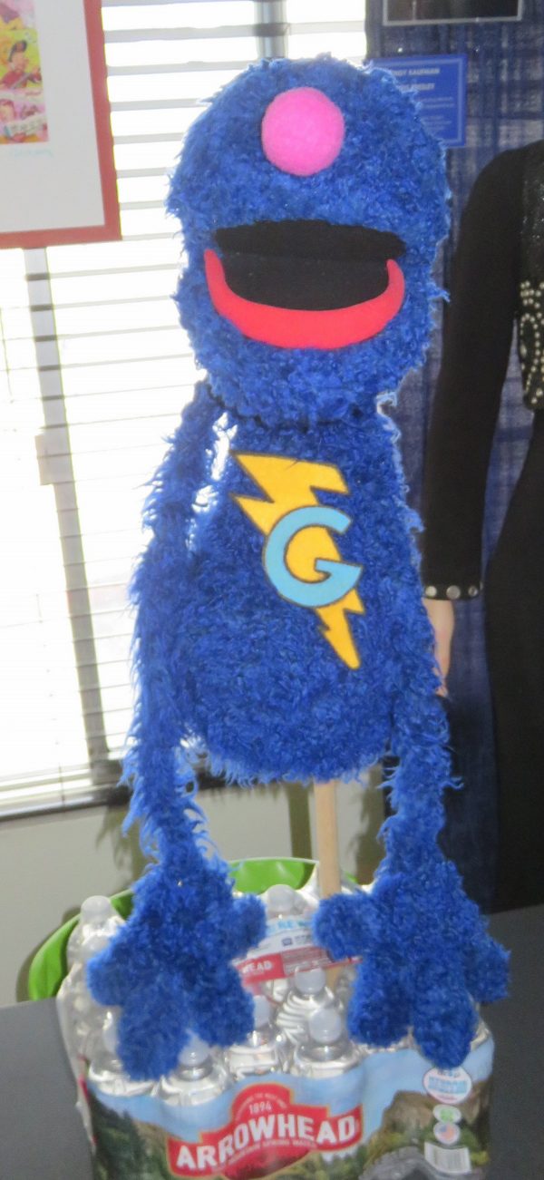 Wednesday the 24th – CLOSING IN ON IT! – My seamstress Maggie came over at noon and we had a long day ahead of us. With Monsterpalooza quickly approaching, we had a lot of work left to do to complete Super Grover for the convention. The arms she sewed for him were good, but not “noodly” enough. So I had her fold them over by half and stitch them together. NOW they were thin and noodly enough! They looked great! Once we were happy with the arms she attached them to the body. Then she attached the head to the body, and I patterned pieces for his hands. She cut the pieces out of the fur and stitched them together. But when they were completed I realized that I had patterned the fingers too short! So I redid the pattern, lengthened the fingers, and even though we were rapidly running out of the custom-dyed fur, we just barely had enough to cut out four more hand pieces (each hand is two pieces of fur sewn together). She finished stitching those together and they looked totally right! I stuffed the fingers to replicate the famous “floppy finger” look that Grover had in the 70’s, and Maggie inserted the Magic Sculpt wrist pieces for the arm rods. I patterned his feet and Maggie cut them out of the remaining fur we had. There was just enough left and we’re down to scraps at this point! Whew! While she worked I made my hotel reservation for my trip to the Voices Against Cancer event in my hometown of Sioux Falls, South Dakota in July. I also went outside by the pool to grab a rare bit of sunshine, as the sun had finally come out from behind the clouds for a mere 45 minutes! The sun felt good on my face, and with several days of cloudy, gloomy weather, it was good to see the sun again…albeit for less than an hour. I sent Maggie home with some homework; to stitch up the legs, stitch the feet, stitch the finished feet to the legs, and stuff them all with Poly-Fil. We’ll get together again on Monday Memorial Day to finish everything up. Before she left I ordered a pizza for us for dinner. When Maggie took off I grabbed a nap, and then got up later to do an audition. While Grover’s hand pieces looked amazing, there was a fair amount of trimming, shaping and defining to do in order to get them to look right. So I started snipping away, and eventually the shape of his fingers came to light. I tried pinning the logo onto Grover with safety pins and leather holsters, but it didn’t work very well. So…back to the magnet idea. But instead of using four metal pieces on the back of the logo, I only glued three…two for the chest, and one for the tummy piece. Then I glued the quarter-sized magnets to the inside of the puppet’s chest by using small, round leather pockets. The magnets would be surrounded by the leather pieces and glued to the inside of the fur, so they couldn’t move around. The third magnet will live between the fur and the foam tummy piece. The first piece glued in nicely! I let it set for a while. Then I glued in the second piece, but I didn’t get the leather piece centered on it well enough. So I tore it off and reglued it. As I was surrounding the third magnet with glue on the tummy piece, the magnet snapped away and attached itself to the metal brush I was using to apply the glue. Stupid me! I should have used a WOODEN brush to do this. It made a real mess and it took me a while to remove the magnet from the metal brush. I finally got everything separated and tried it again. The second time was successful, and all three magnets were successfully seated into the puppet’s torso. I decided to call it a night, so I heated up some leftover pizza from earlier, and watched a few episodes of “Have Gun – Will Travel” before bed. I’ve been battling fairly horrible allergies and a stuffy nose over the past few days. The pollen count in L.A. (with all of the rain we’ve had) has been through the roof, so I think I need better allergy medicine!