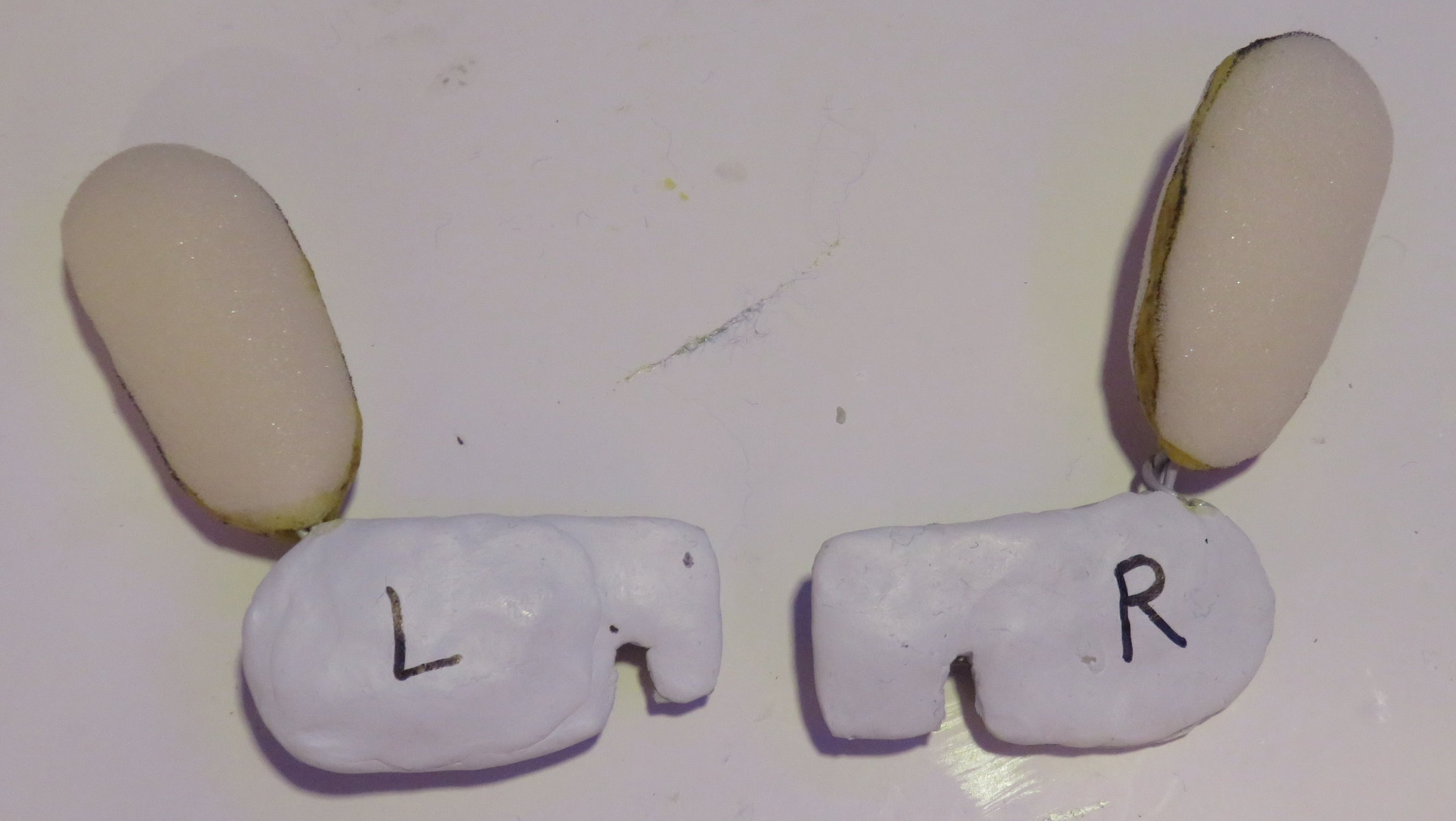 Though they don’t look like much, these pieces will go in Grover’s wrist and provide a bendable thumb, and attachments for his removable arm rods.