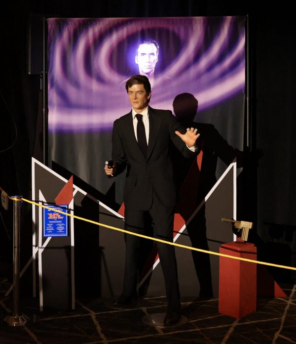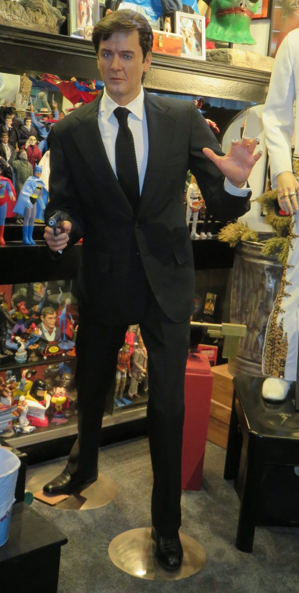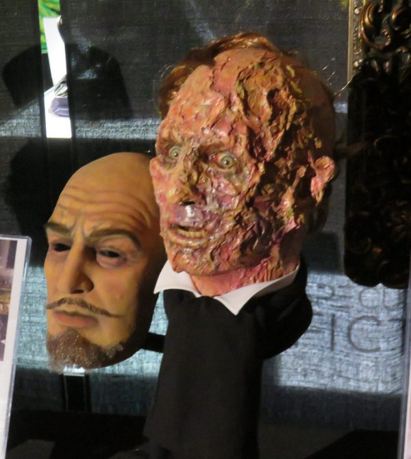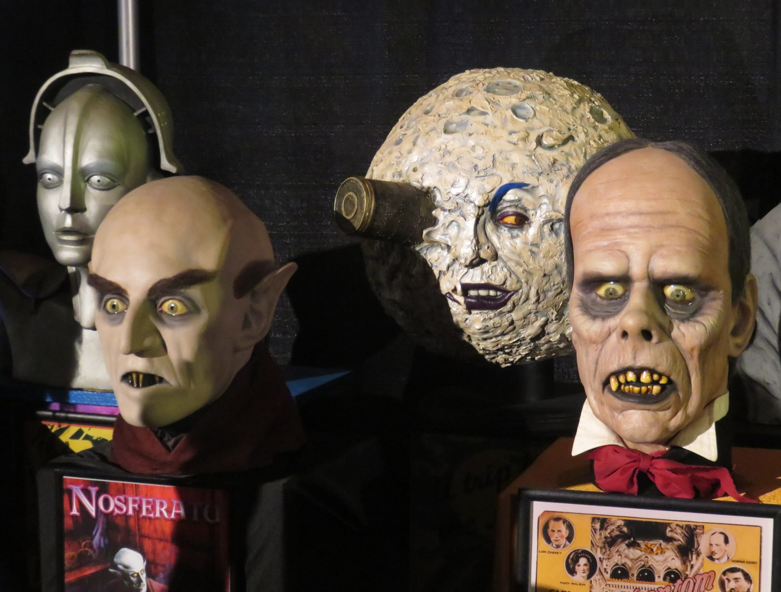 Friday the 30th – MONSTERPALOOZA: DAY 1! – As I packed some last-minute things for the convention I noticed that my voice was a bit creaky. Uh oh! Not sure if it was weather-related, or perhaps it was from working in the heat while setting up in the museum. Whatever the reason, I needed to be careful not to lose it entirely. I had a long weekend to get through! I hit the road and got to Pasadena around 3:15. Luckily they had a room available, and even though check-in wasn’t until 4, they let me in early. And it was a room on the top floor! BONUS! I dropped my luggage and then headed over to the convention before they opened at 6 to put the final touches on the Roger M00re display. He was looking good! The lighting looked good, hair looked good, pose looked good, props and flats looked good – we were ready for prime time! I saw a bunch of friends while I was there, including my good pal Dan Roebuck – who had a table there for the weekend. I headed back to the room, totally wiped, and then got a call from my gal Angi – she was on her way over. I got up and headed downstairs to give her the excess parking pass so she could park in the hotel structure. Oddly enough, she was having voice problems too. Perhaps it’s something in the weather that’s irritating vocal cords?! We went to the con and had a blast looking around. Then we walked across the street to the Yard House and had dinner. Then we headed back to the con for the final hours and finished out the day.