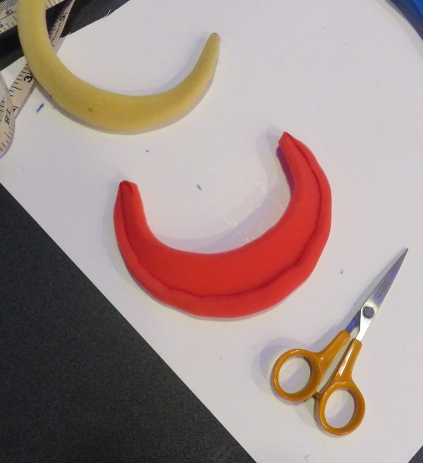Two inches at a time, I glued the lip into place on the puppet’s lower mouth plate. I took it in small sections to ensure accuracy as I went.