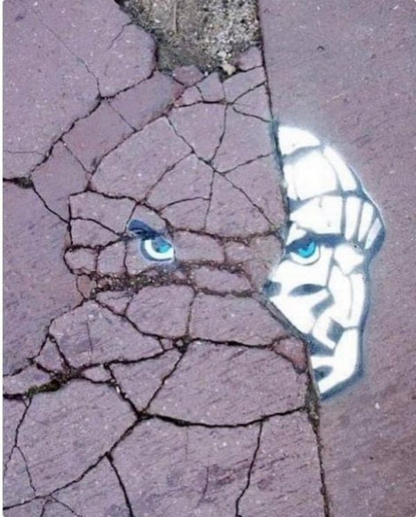 I saw this photo on Instagram and I lifted it. I’m not sure who the artist is, but they’re brilliant. Any person who can look down at a cracked sidewalk and see the face of Ben Grimm aka “The Thing” from The Fantastic Four comic book series, is somebody I’d truly like to meet.