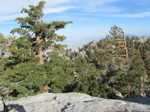 Friday the 3rd – PALM SPRINGS DAY 2! – I slept really late since I had spent all night watching the stars and listening to the owls. But luckily the Palm Springs Aerial Tram was running trams up to the mountain top until 8:00 that night. I had never done that before and when I drove into town I passed a sign for the tram. I decided that this trip I was going to do it! Amanda’s afraid of heights, but I assured her that the tram was safe, as it’s been operating since 1963 with no mishaps. We got to the top and started looking around for the restaurant. We thought about going down on the trails, but our stomachs were demanding immediate attention. So we got some food in the cafeteria and sat down. I’ve always said that pizza is a lot like sex. Even when it’s bad it’s still pretty good. But I won’t be saying that any more. This pizza was the worst I’ve ever tasted. It was almost like it had been sitting out for awhile getting dry. But at least it was something. I made up for it by getting some ice cream. As I was coming back to the table with my ice cream I noticed somebody outside the restaurant taking pictures of something. I looked down and it was an adorable little grey ground squirrel foraging for crumbs. He was darting in and out of people’s feet as if they weren’t even there. Obviously he was quite tame. He took advantage of a gap between the doors and entered the restaurant! He went underneath the tables looking for scraps. Some ladies sitting there were shocked at first, but the waitress said, “There’s nothing to be alarmed about. He does this sometimes.” Then the ladies started taking pictures of him and laughing. I coaxed him back outside with one of my pizza crusts. But some guy opened the door to exit and didn’t see the squirrel. The squirrel darted for the door and it didn’t look like he was going to make it. I ran for the door to grab it so it wouldn’t squish the little guy but he darted on through like nobody’s business. Clearly he had done this before. The signs said DO NOT FEED THE WILDLIFE. But I ignored it because this little guy was so cute. Then another squirrel came out and started eating food too. They liked our ice cream quite a bit! Amanda threw a small chunk of chocolate ice cream on one of the rocks and the squirrel delighted in chowing half of it down. Then he ran off the rock, rolled around in dirt for awhile, and ran back up on the rock. By now the remaining chocolate ice cream was starting to melt down the rock. The squirrel climbed up the rock and started to lick the trail of melted ice cream off the rock. THIS ROCK IS DELICIOUS! It was the funniest thing I had seen in a long time! I’m glad I had my camera handy! I also saw a few lizards (I think they’re called Alligator Lizards), and a few other little critters. We walked up to a lookout point and was amazed at the view. Breathtaking doesn’t even begin to accurately describe it. It really is very peaceful and awesome. We caught the 5:30 tram back down to the bottom and headed back into town. I took a nap, then hit the jacuzzi and ordered some room service because I didn’t feel like going back out for dinner. Once again I spent most all night sitting on my balcony, watching the stars, listening to the owls and pondering life. I even saw a few shooting stars!