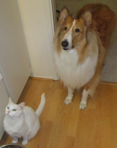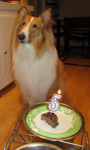 Spook joins the party and patiently waits for his share of the birthday steak!
