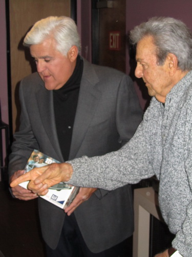 Clutching the vintage 1968 Mannix Roadster model kit (still in the shrink wrap) Jay meets Mike “Mannix” Connors at the Tonight Show studio.
