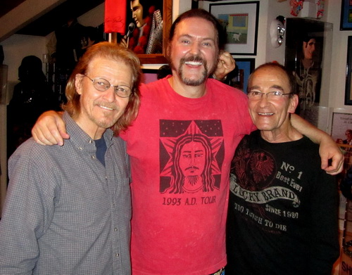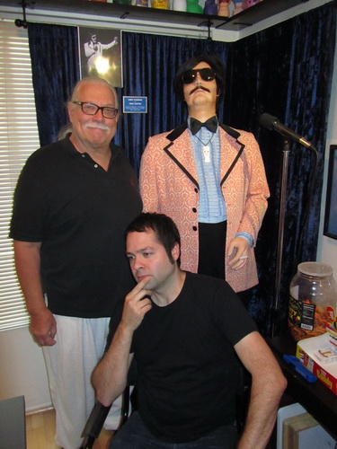 Who says that Bob Zmuda and Tony Clifton are never seen together! Here Bob and his Comic Relief associate Jeremy pose with Tony in my kitchen.