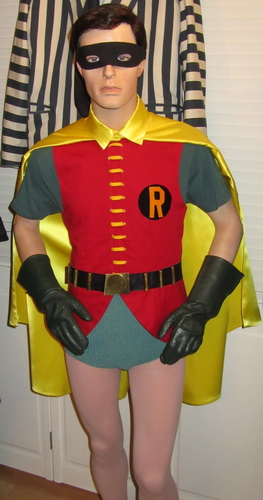 The newly “haired” Robin figure stands in the Chaney Room waiting to join Batman!