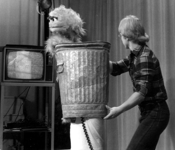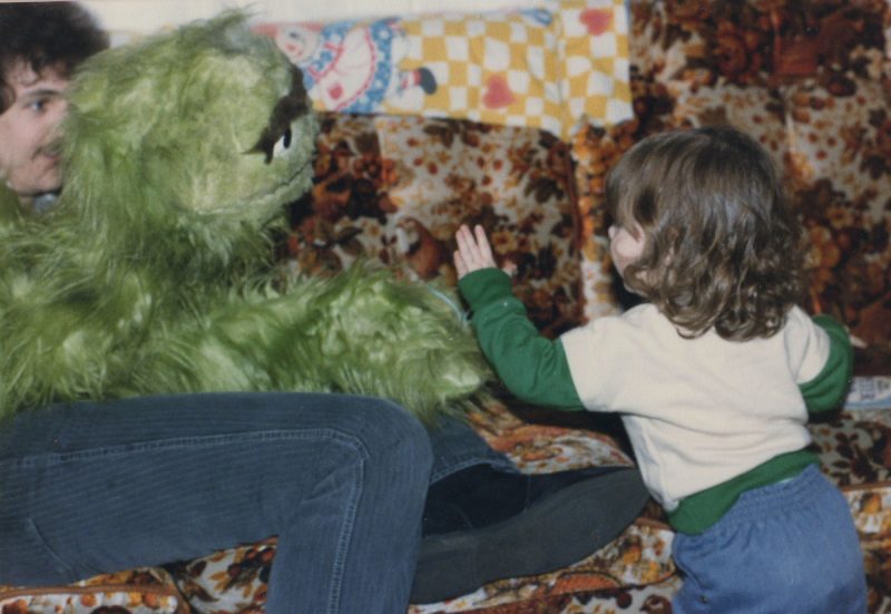 Not the cheery, clean lime-green color he is today, in the 70’s he was mossy green, ratty, matted and filthy. That’s MY Oscar! My effects guy Jim Ojala even created a wonderful trash can home for Oscar to be displayed in. Oscar leers at visitors to Planet Wallywood from a corner of the living room.