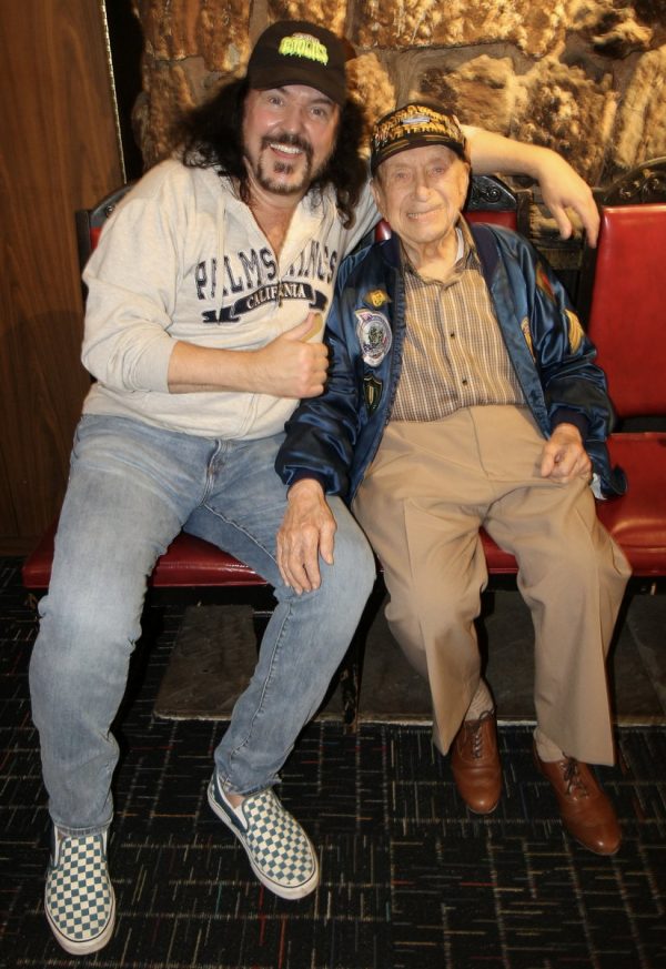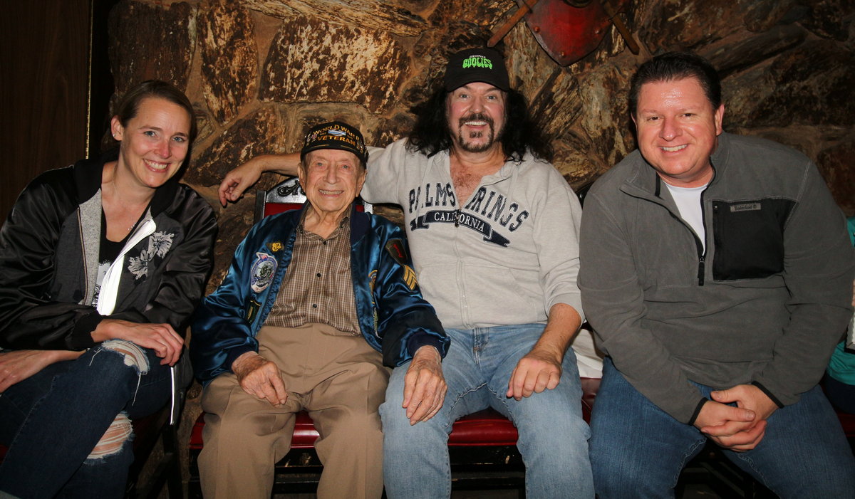 Friday the 5th – BIG MONEY MUNSTERS! – The day started with me munching on a blueberry muffin and watching the Munsters auction on the Heritage auction site. I had a bid in on one specific lot, but as I watched the money fly and the bids go sky high on the other stuff, I knew I wasn’t going to get the item. Which is OK. Because while I liked the Munsters, I wasn’t crazy about it. The lot I was interested in went for 3 times what my maximum bid was. I drove over to the bank to make some deposits, and then went to my mailbox to get my packages. I mailed off some Christoween merchandise, had a salad on the patio at Paty’s, and then went back home to feed the kids. After a quick change of clothes, I got back into the car and headed over to Barone’s Italian restaurant. I met up with my pal Officer Mark and his girlfriend Miss Connie. I also met with Denise and Seig, and their cousin “Bazooka” Joe! He’s the 102 year old WWII vet I’ve told you about before. I wanted Officer Mark to meet him, and Joe had some photos of cars he restored that he wanted me to send over to Jay Leno. It was great seeing them again, and it was a ton of fun! I came back home and relaxed.