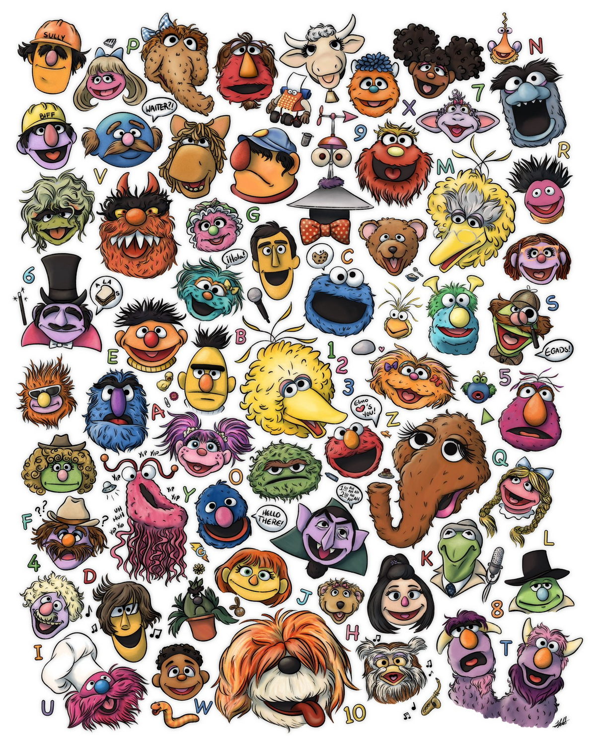 Sesame Street turns 55 this year! This is an amazing sketch of all the great Sesame Street Muppets, but sadly I don’t know the artist to whom the credit should go.